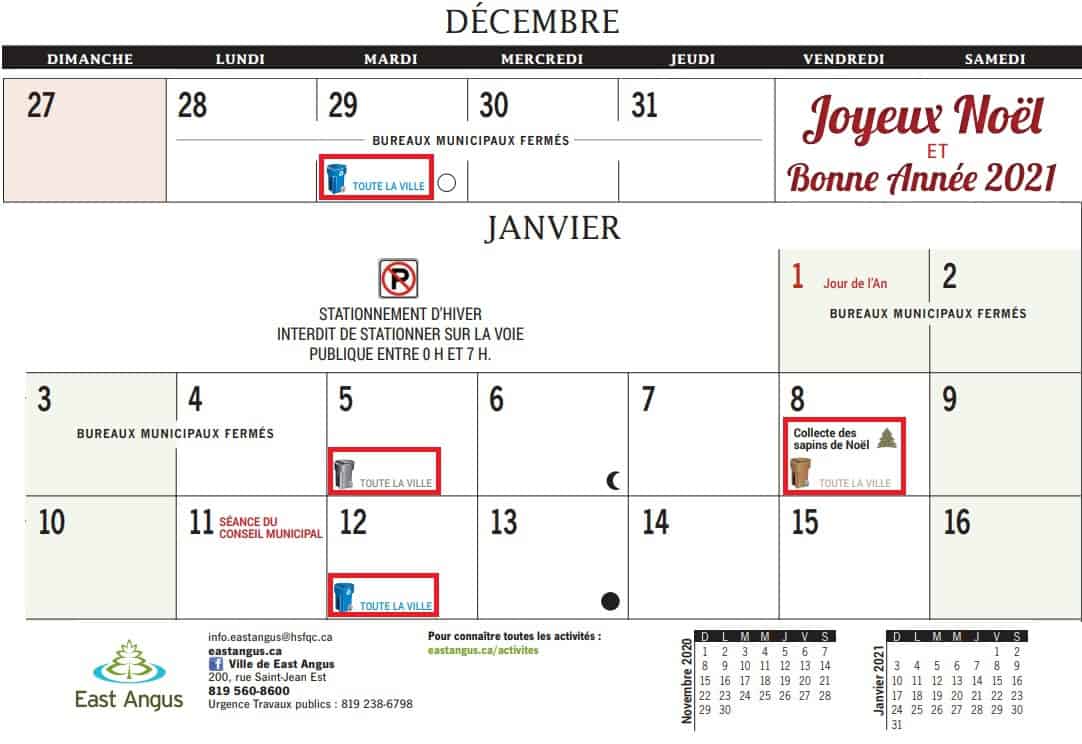 Veuillez prendre note des prochaines collectes à venir durant la période des fêtes.