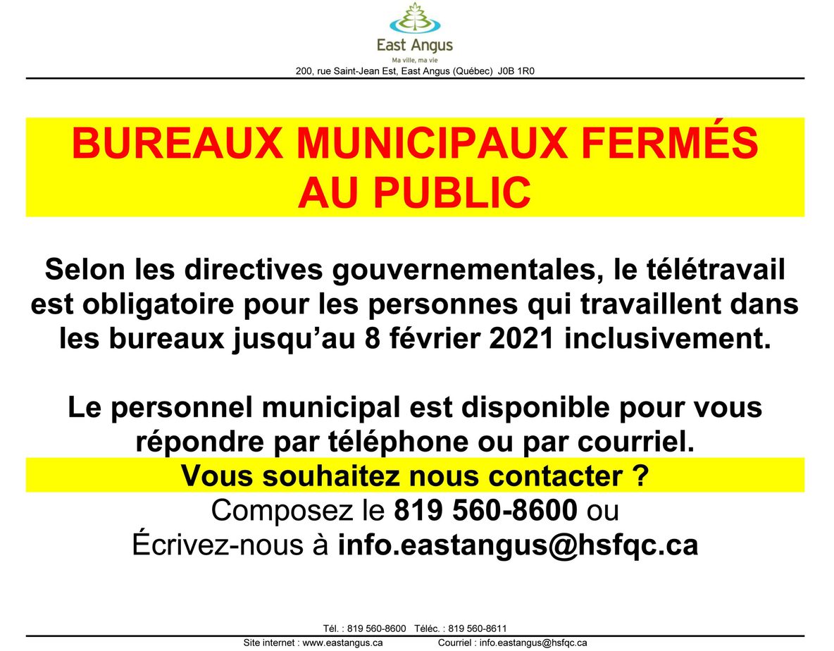 Le personnel municipal est disponible pour vous répondre par téléphone ou par courriel.