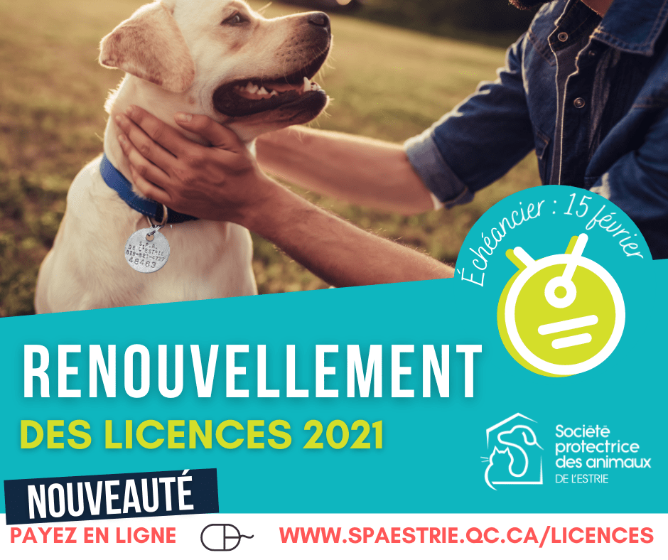 Pour plus d’information, n’hésitez pas à communiquer avec le département des licences de la SPA de l’Estrie au 819 821-4727, option 4.