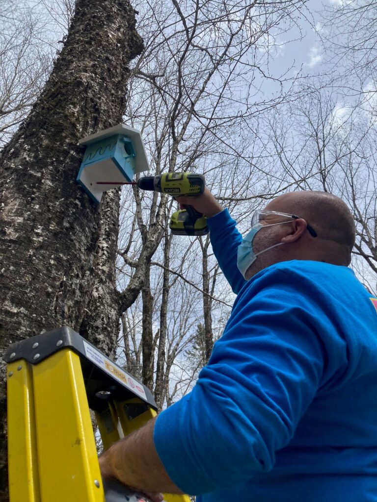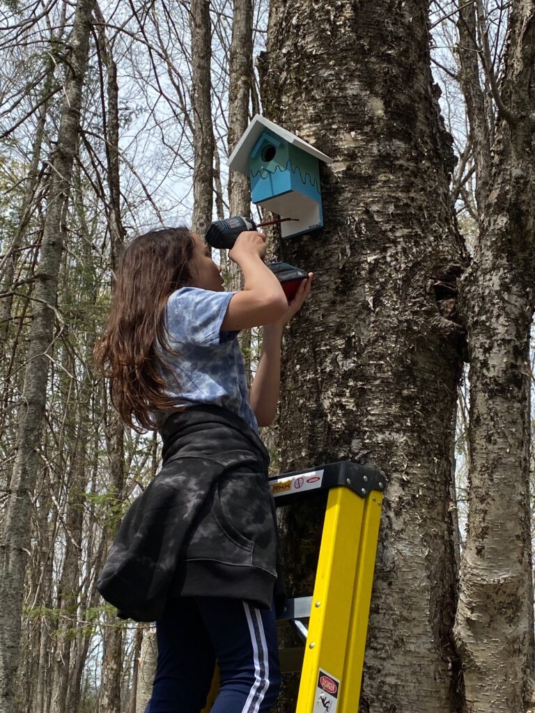 Aujourd’hui, jeudi 13 mai 2021 avait lieu l’installation des cabanes à oiseaux peintes par les élèves de 6e année de la classe de M. Alexandre Dumas.