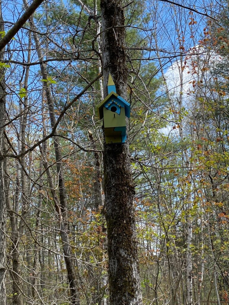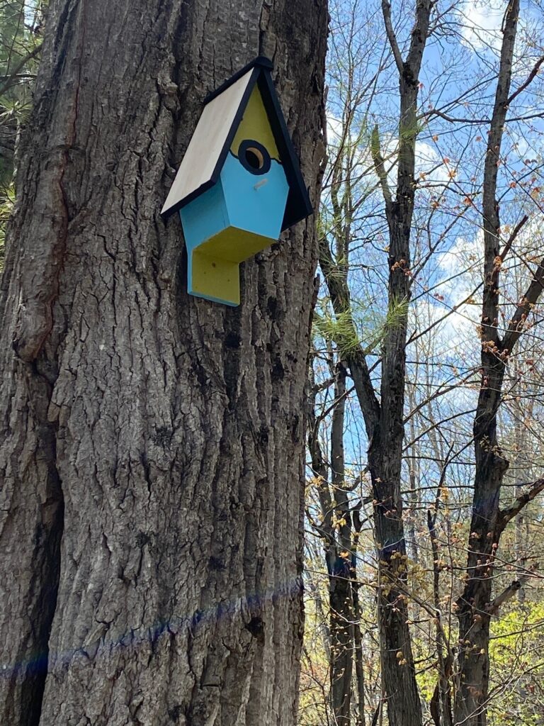 De belles cabanes à oiseaux peintes par des élèves de l’École du Parchemin.