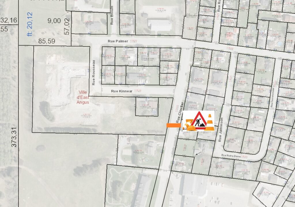 Travaux ce mardi 15 juin à compter de 13 h pour des entrées de service d’une nouvelle propriété face au 131, rue Cloutier. Prévoir la fermeture temporaire de ce tronçon de la rue Cloutier entre 13 h et 17 h ce mardi 15 juin. Détour avec signaleurs dans la cour du Centre régional East Angus situé au 150, rue Angus Sud.