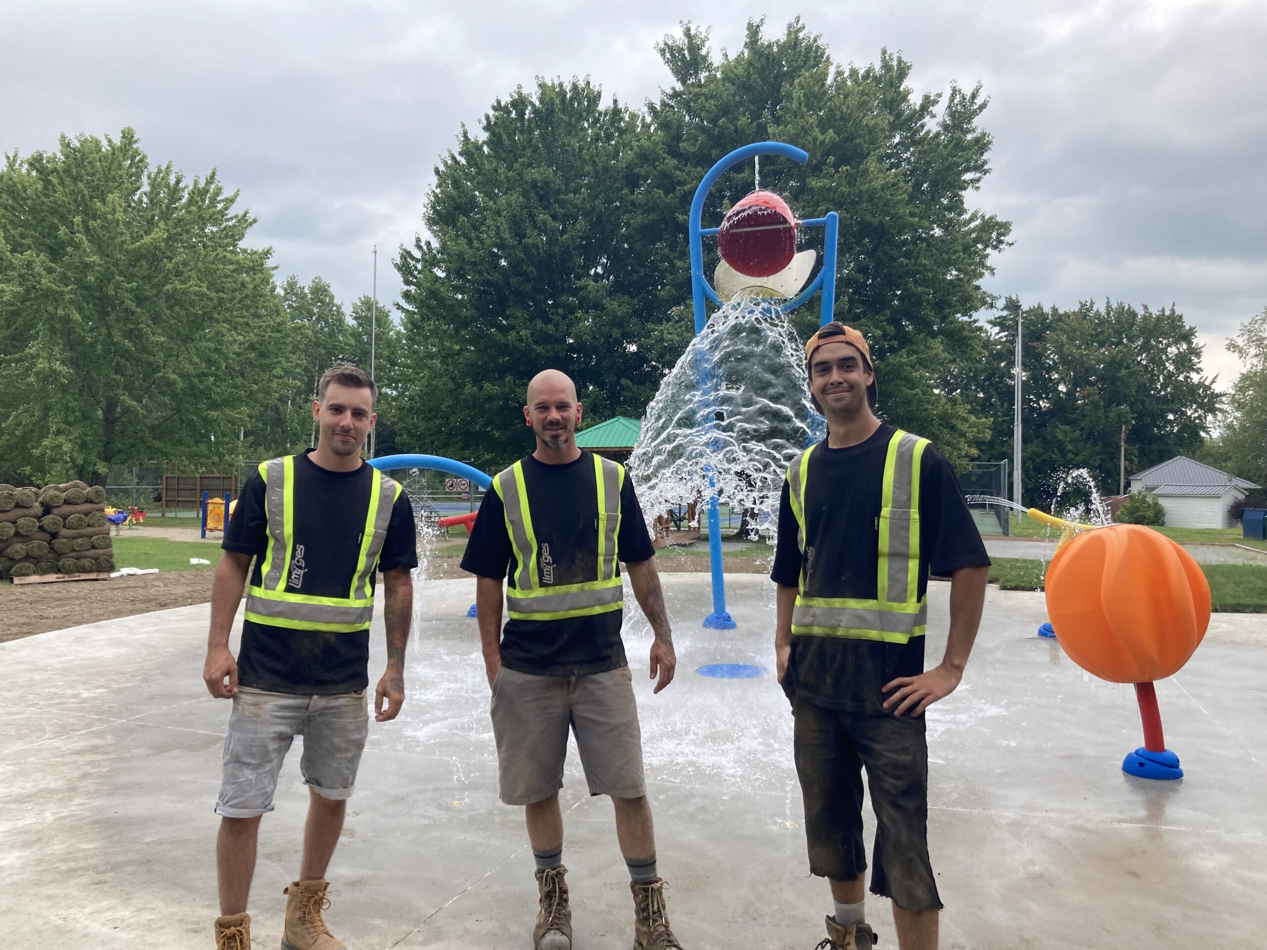 Dans le cadre du projet d’aménagement d’une aire pour personnes à mobilité réduite incluant un jeu d’eau au Parc de la Rive-Sud, la première étape du projet est maintenant réalisée : l’installation d’un jeu d’eau.