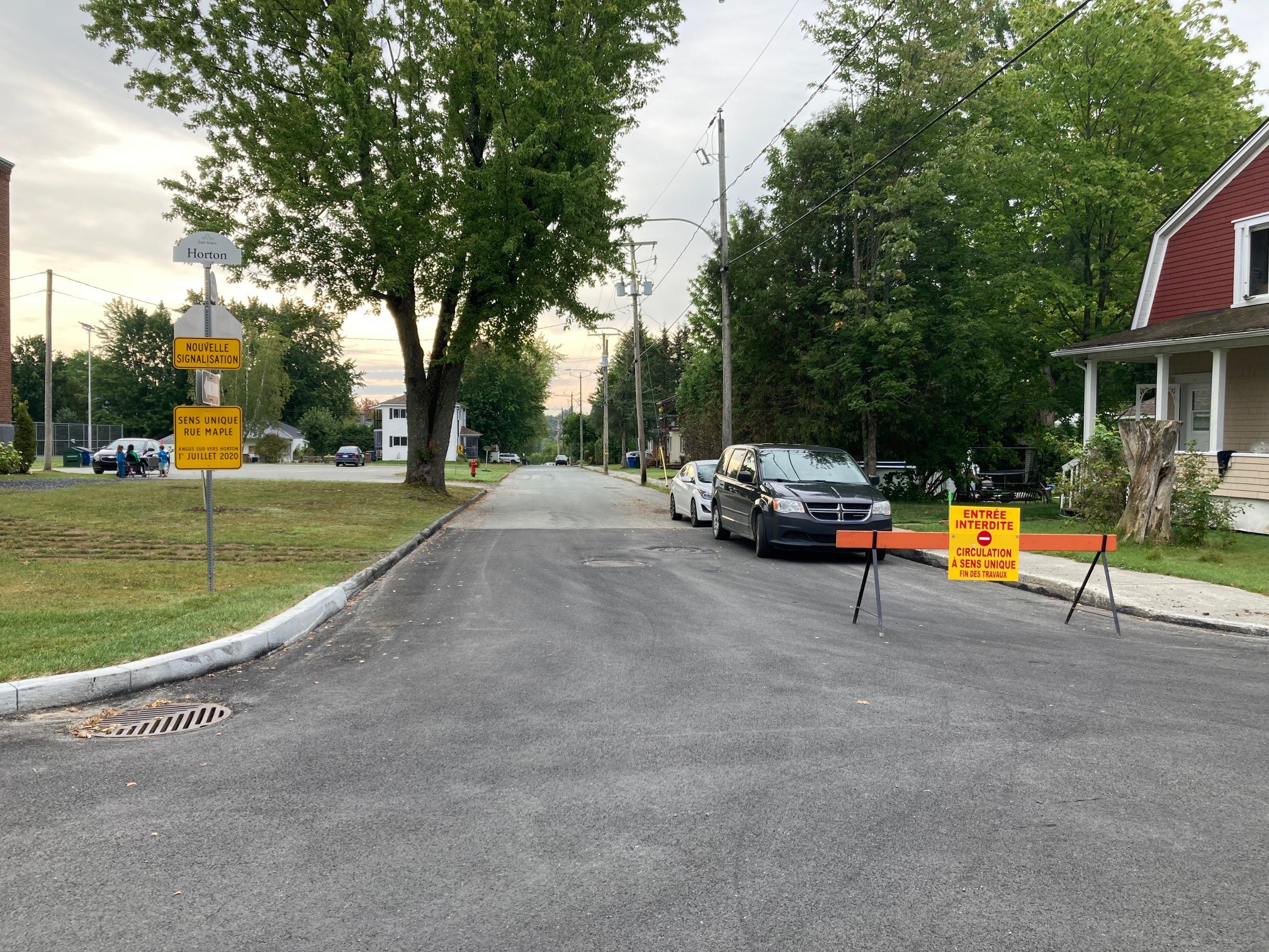 La rue Maple est une rue à sens unique depuis le 1er juillet 2020 de la rue Angus Sud vers la rue Horton.