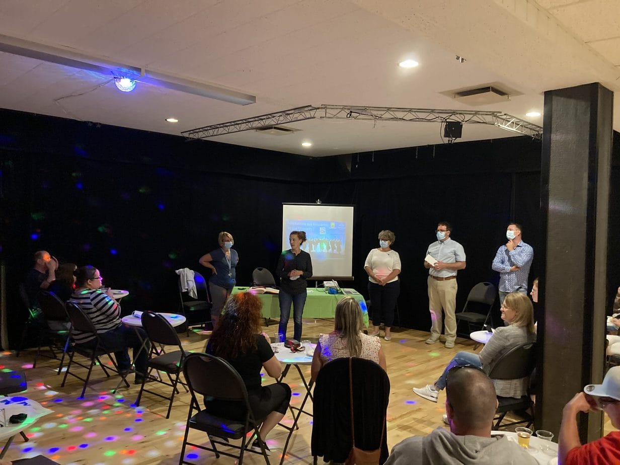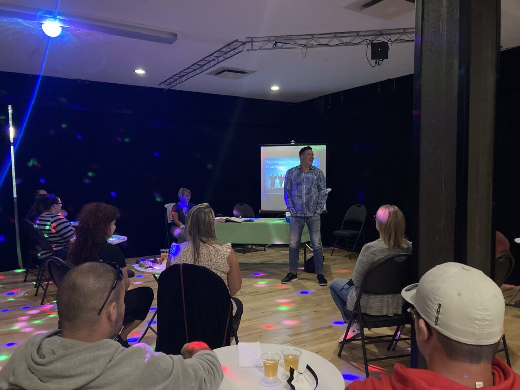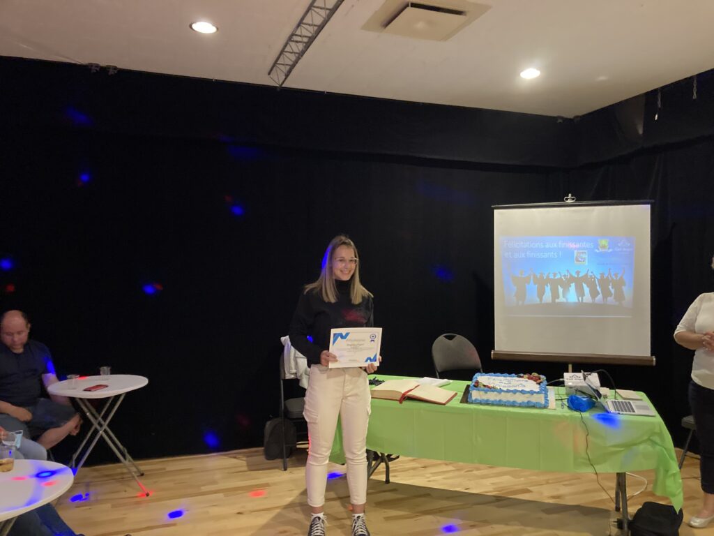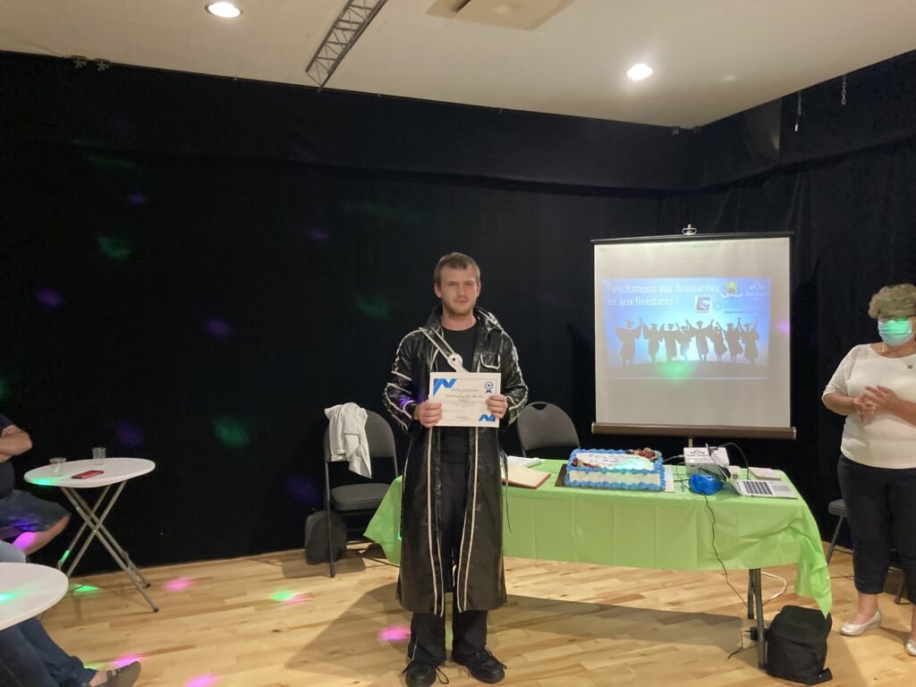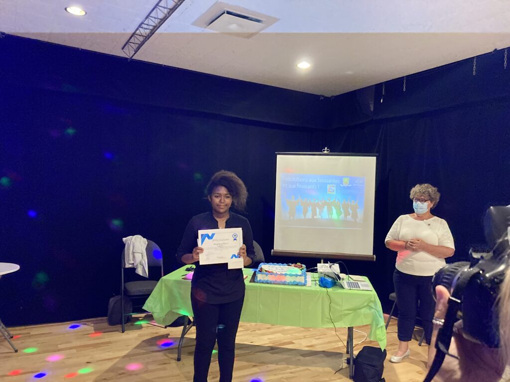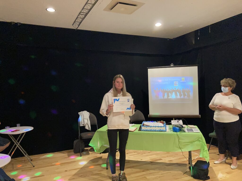 C’est ce mercredi 1er septembre 2021 au Centre culturel en présence des jeunes finissantes et finissants, parents, Mme Lyne Boulanger, mairesse de la Ville de East Angus, les membres du conseil municipal, M. Rémi Vachon, représentant de la Caisse Desjardins du Haut-Saint-François, M. Tommy Poulin, directeur de la Cité-école Louis-Saint-Laurent, mesdames Lyne Nadeau, Geneviève Lagueux, Rosalie Nadeau, enseignantes et Renée-Claude Leroux, organisatrice communautaire qu’avait lieu la soirée reconnaissance des finissants.