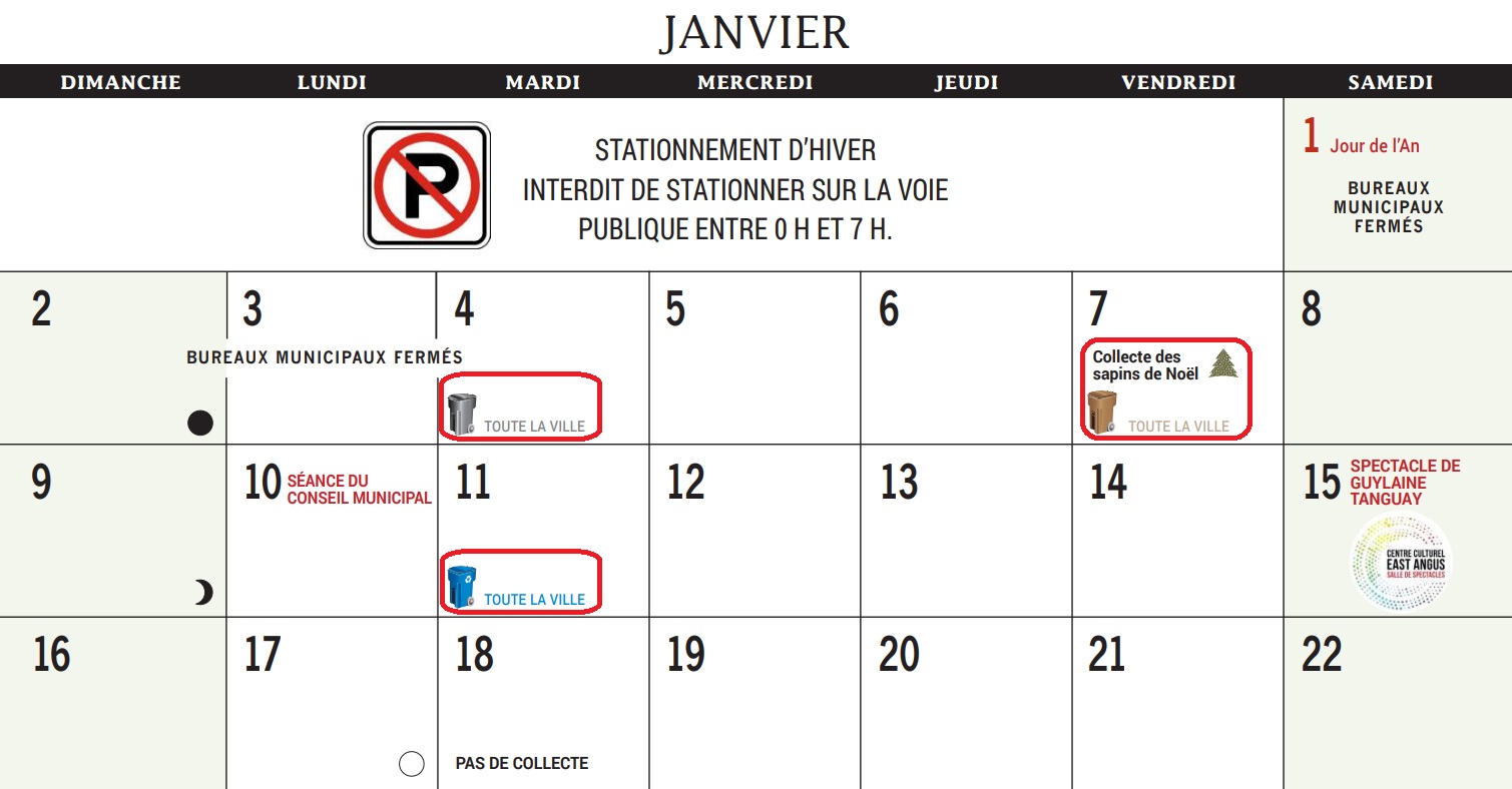 Vendredi 7 janvier : Collecte des matières putrescibles / compost (bac brun) et des sapins naturels.