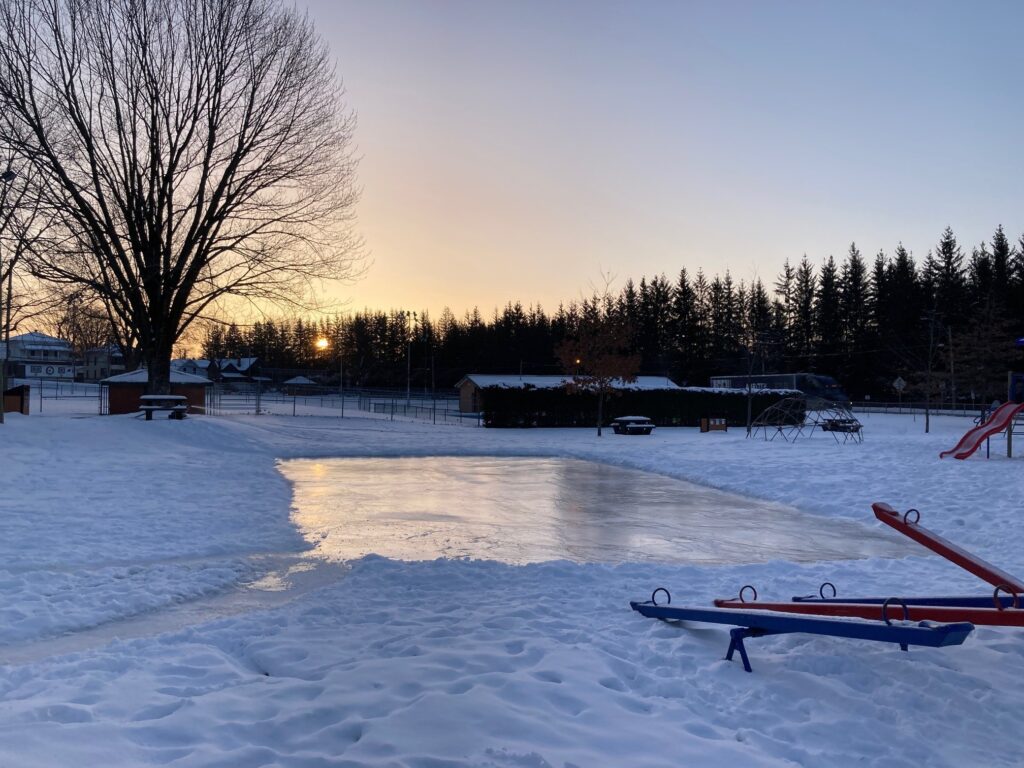 En tout temps, il sera possible d’enfiler ses patins à l’extérieur, il y a un banc à proximité de la patinoire