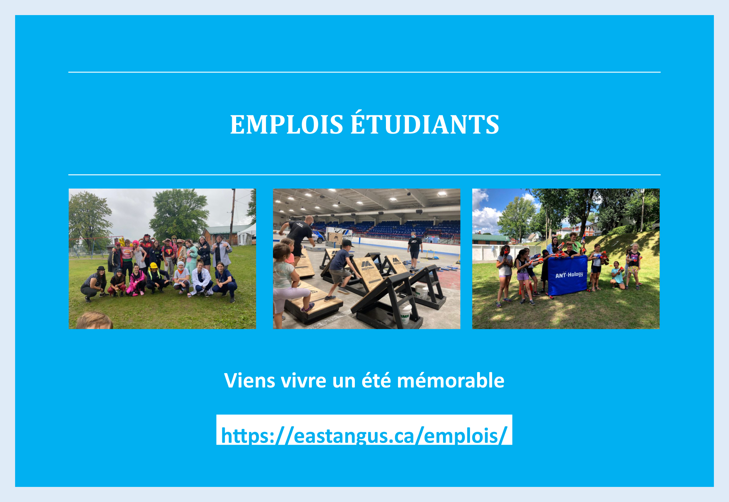 La Ville de East Angus est en période de recrutement pour les emplois estivaux dans le département des loisirs. Voici les postes disponibles :