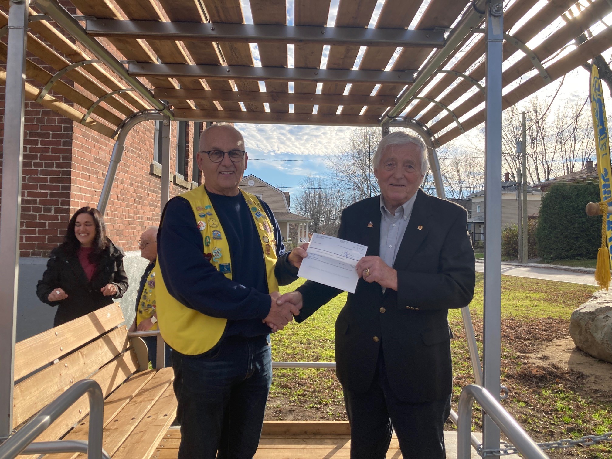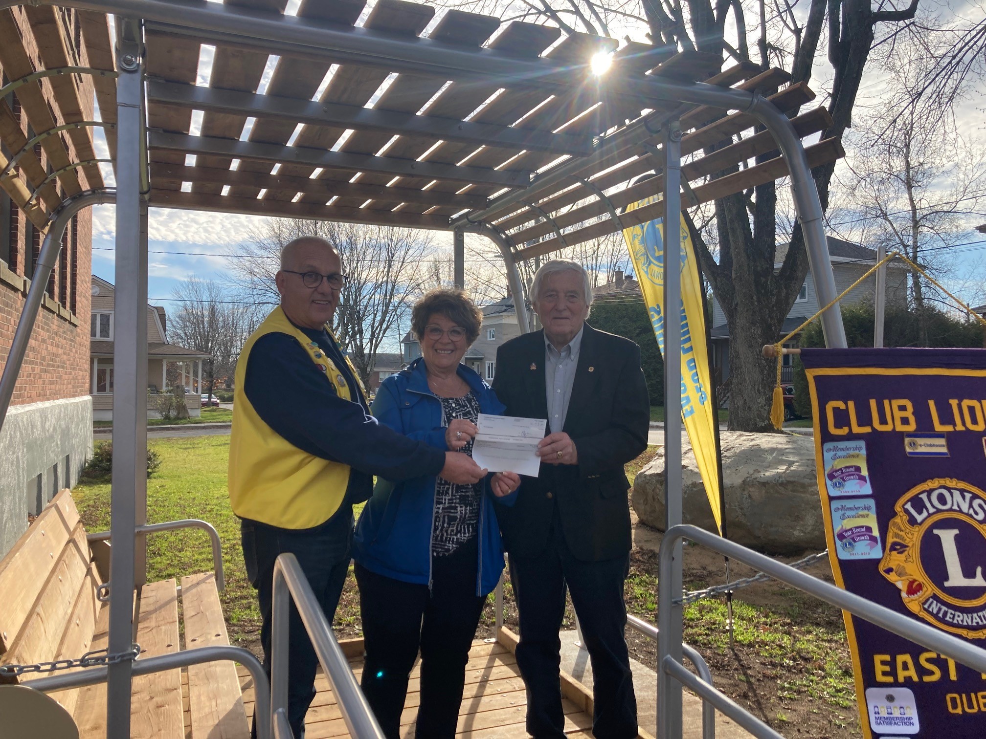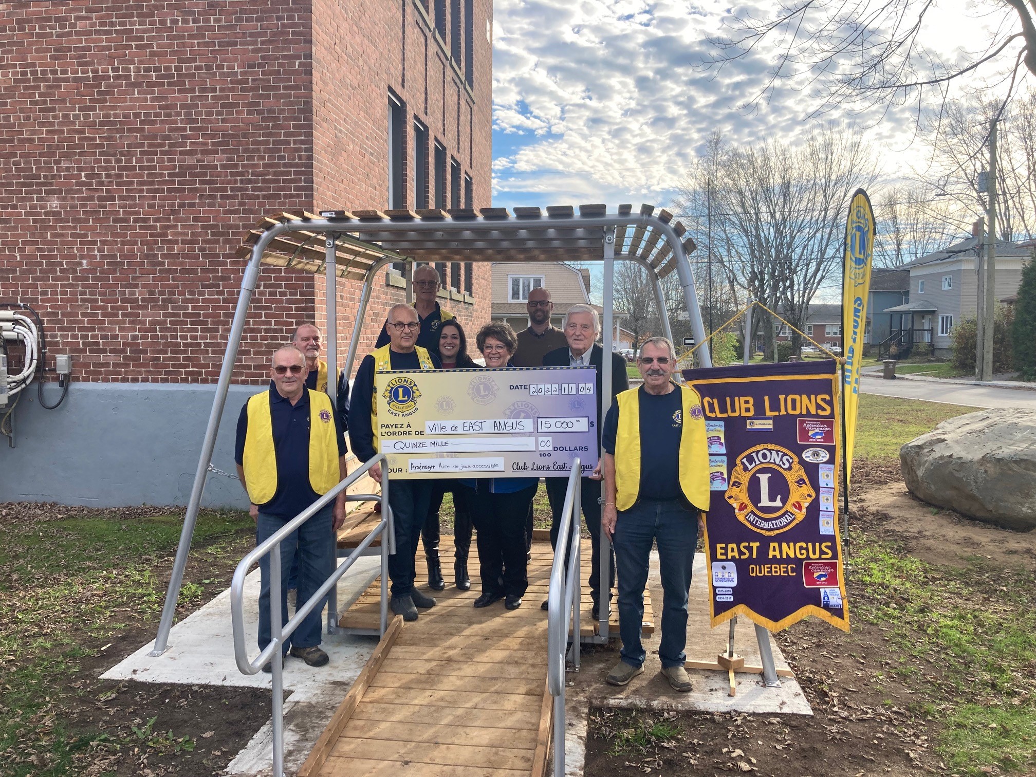 Dans le cadre du projet d’aménagement d’une aire de jeux accessible au Parc de la Rive-Sud situé au 288, rue Maple à East Angus, le Club Lions de East Angus ainsi que la Fondation des Clubs Lions du Québec ont contribué au projet en offrant une somme totale de 15 000 $.