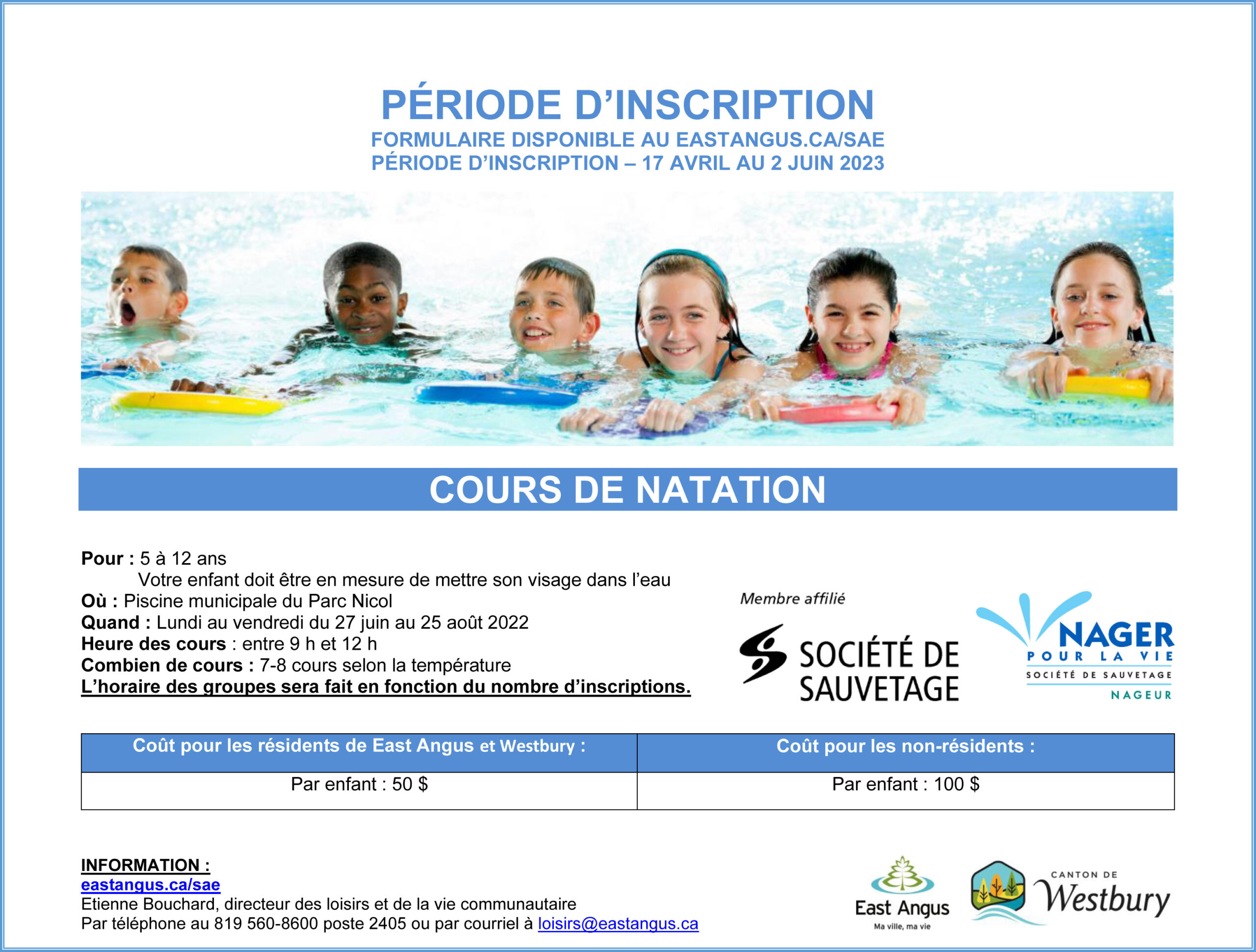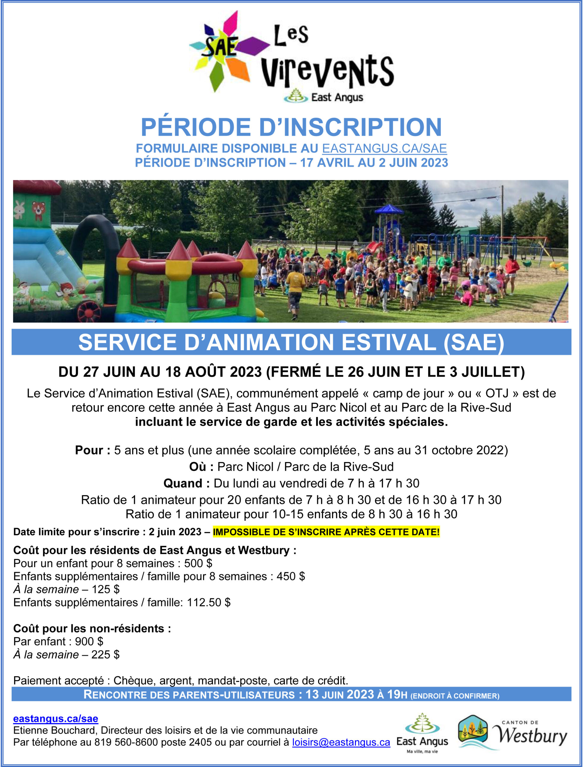 La période d’inscription pour le Service d’animation estivale débute ce lundi 17 avril et prendra fin le vendredi 2 juin à 20 h.