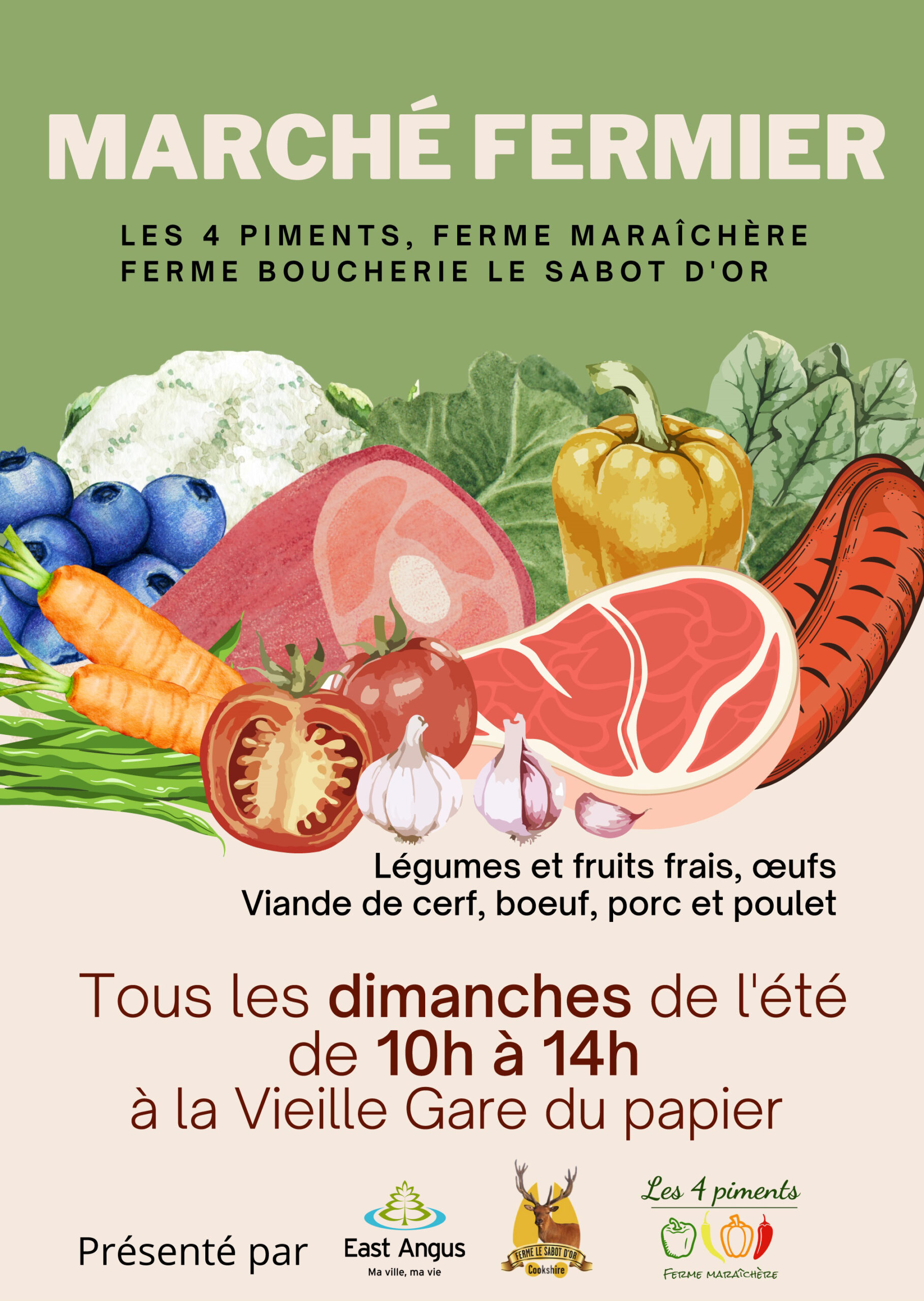 Présenté par : Les 4 piments, Ferme maraîchère, la Ferme boucherie Le Sabot d’Or et la Ville de East Angus