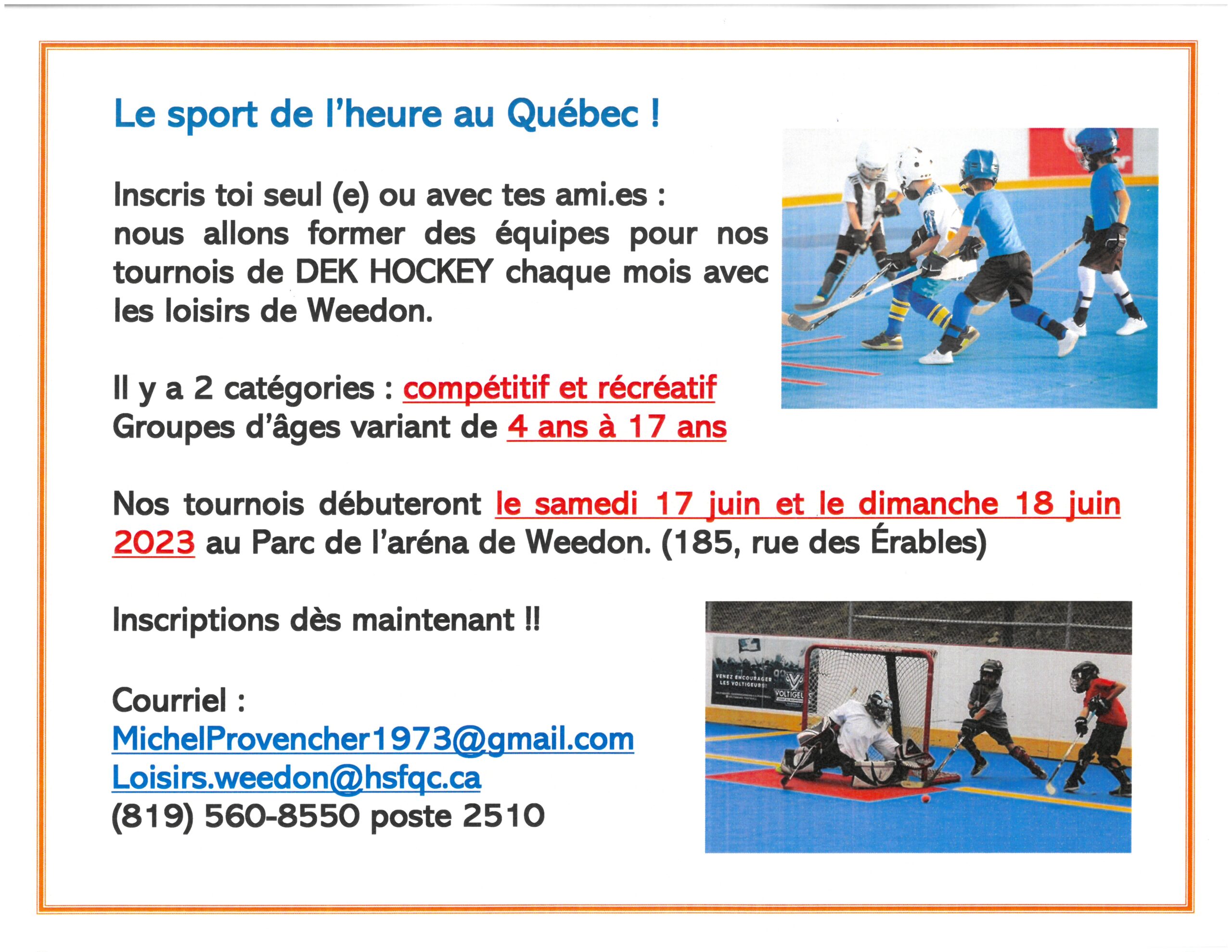 Informations par courriel : loisirs.weedon@hsfqc.ca / michelprovencher1973@gmail.com