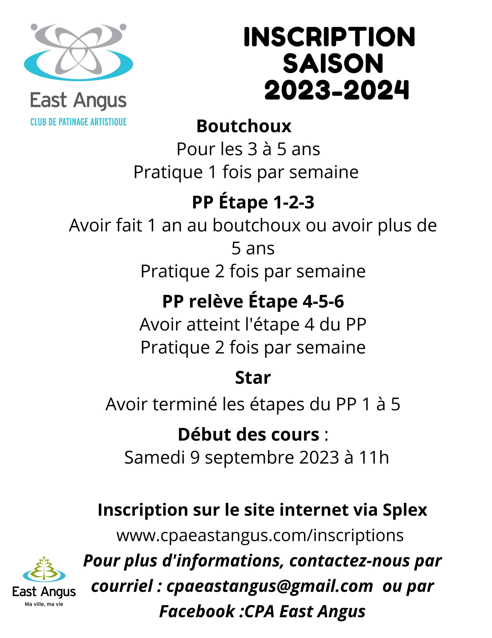Patinage artistique : https://cpaeastangus.com/inscriptions/?fbclid=IwAR1qOhx7CXyEPCE400z5ZMhfQiFF1-wU4-YE60SlnItGff7Z0M2iKHAcmuA