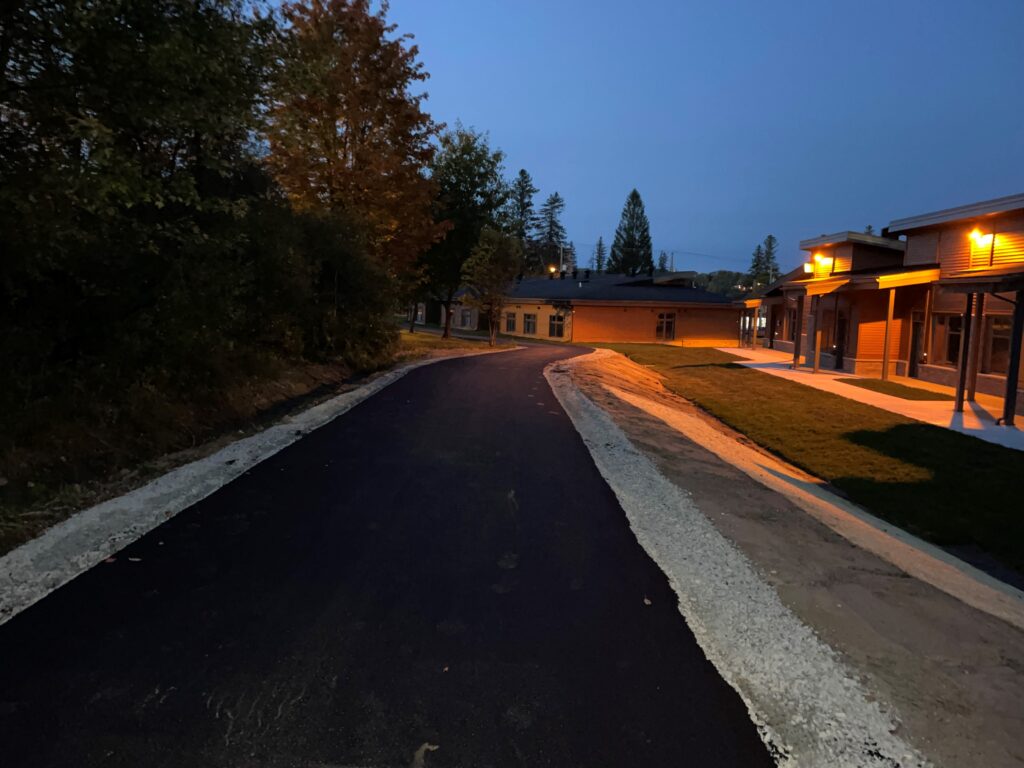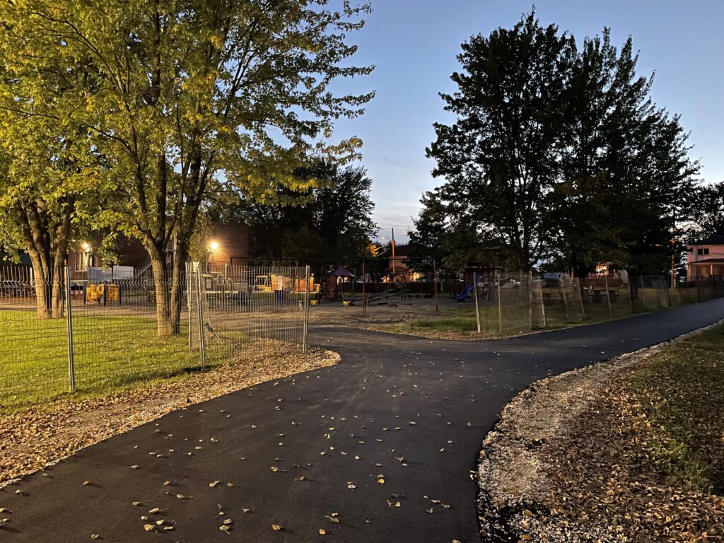 Finalisation du projet d’aire de jeu accessible au Parc de la Rive-Sud avec le pavage du dernier tronçon entre le Parc de la Rive-Sud et la rue Warner suite aux travaux de finition du 3e immeuble de Han Logement. Un projet total de 400 000 $ se termine avec cette dernière phase des travaux réalisée grâce à une aide financière du gouvernement du Québec et du Canada. Un ascenseur sera bientôt installé dans le cadre d’un autre projet afin de faciliter l’accès au bâtiment centenaire du Centre culturel de East Angus.