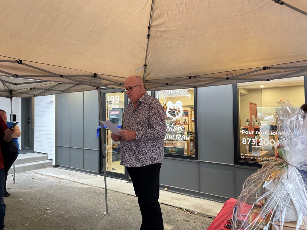 Ouverture officielle du local de la Fondation Marc Rousseau au 199, rue Bilodeau hier vendredi 6 octobre 2023. Les constructions Sylvain Brière offrent gracieusement ce local à la Fondation Marc Rousseau. Madame la mairesse Lyne Boulanger était présente pour l’occasion. Félicitations à tous!