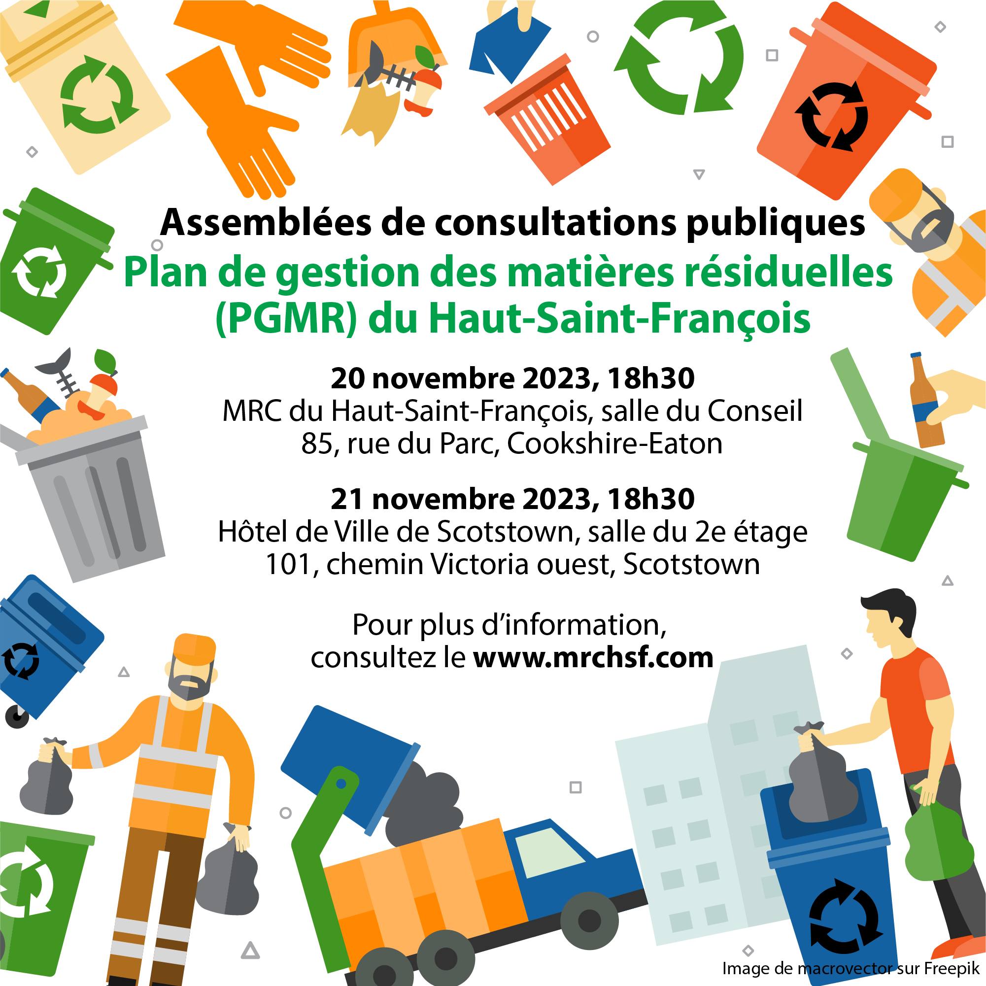 Assemblées de consultations publiques concernant le Plan de gestion des matières résiduelles (PGMR) du Haut-Saint-François