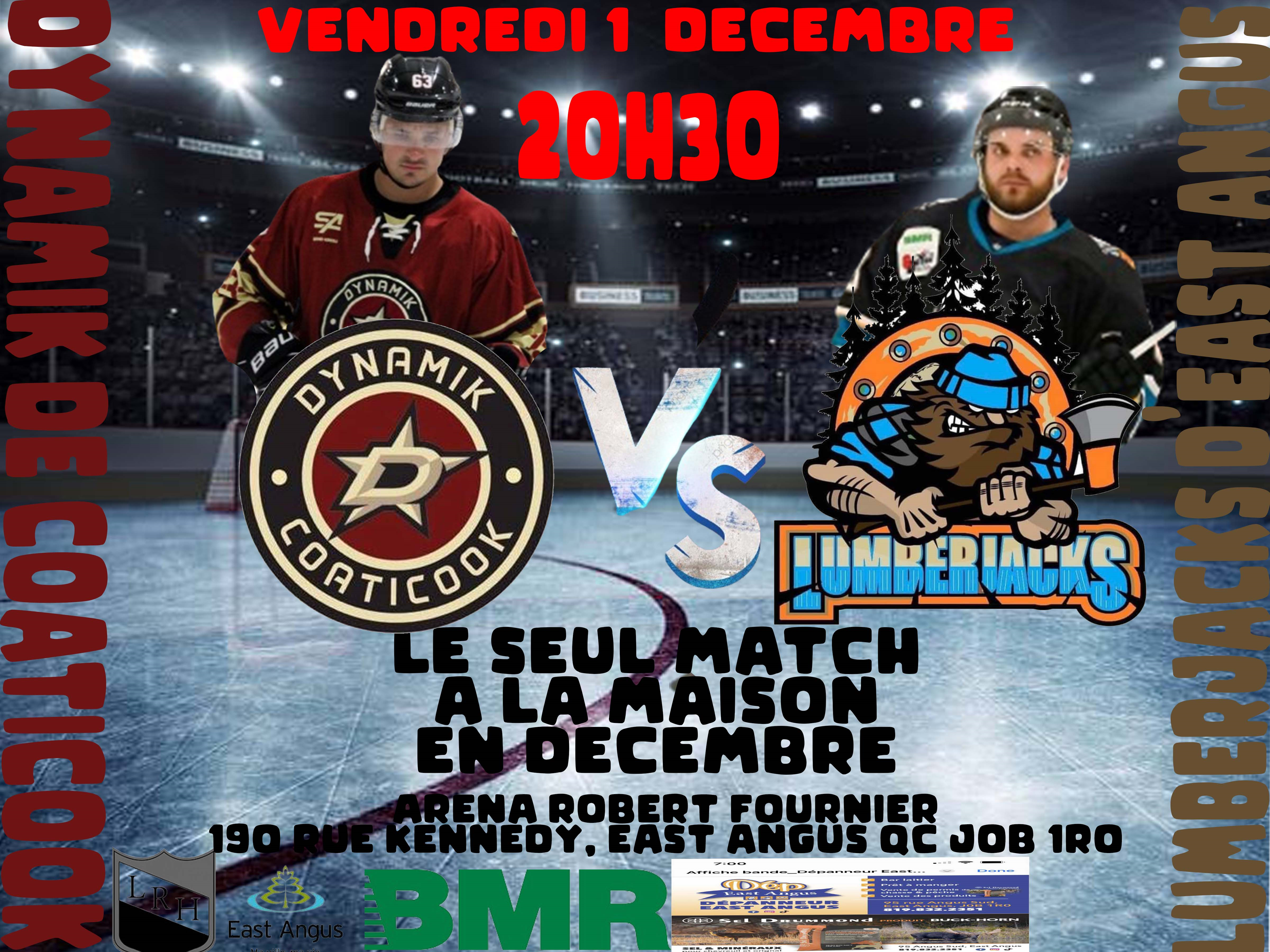 Venez encourager nos LumberJacks d’East Angus – LRH de la Ligue Régionale de Hockey ce soir vendredi 1er décembre à 20 h 30 à l’Aréna Robert-Fournier de East Angus!