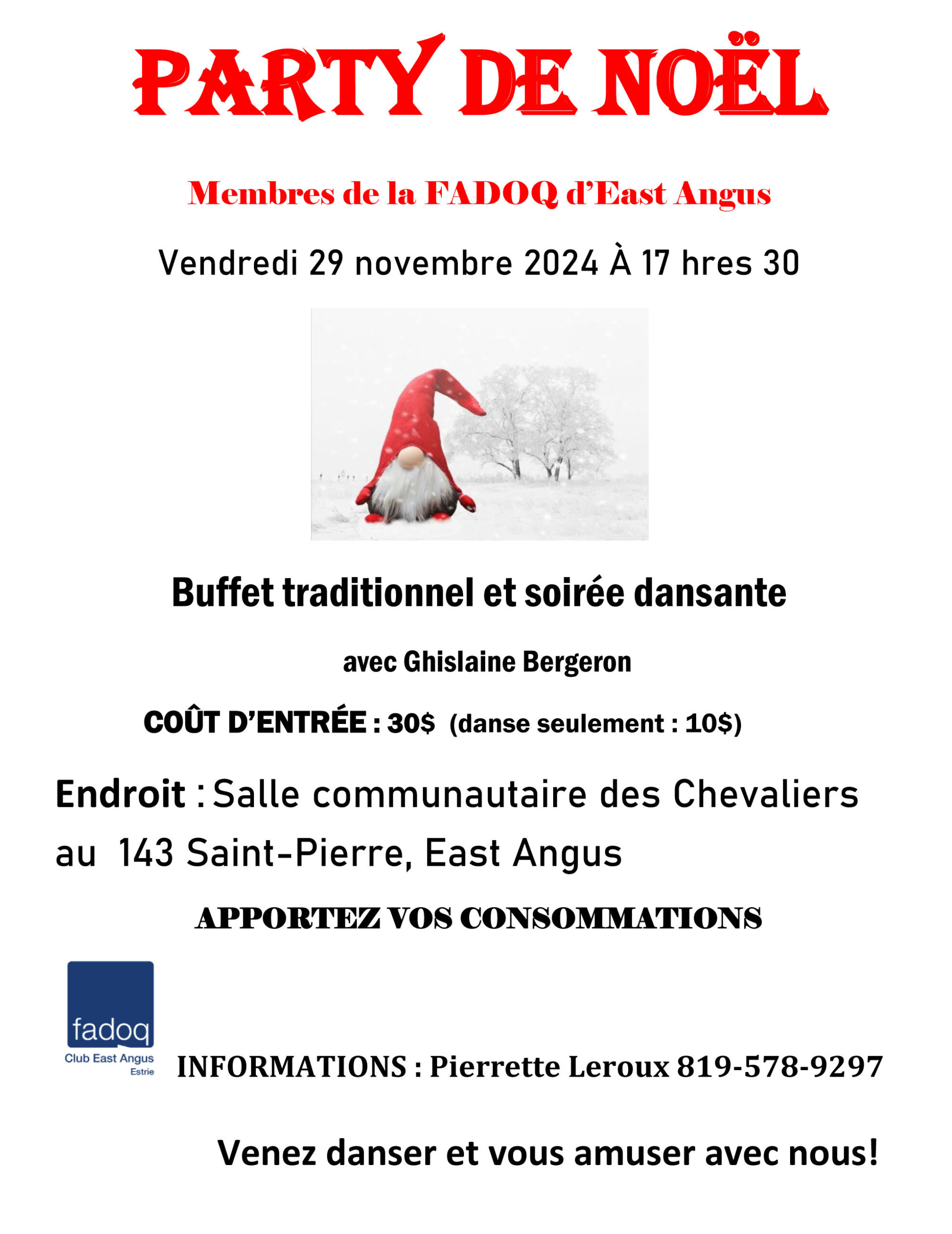 Endroit : Salle communautaire des Chevaliers au  143 Saint-Pierre, East Angus