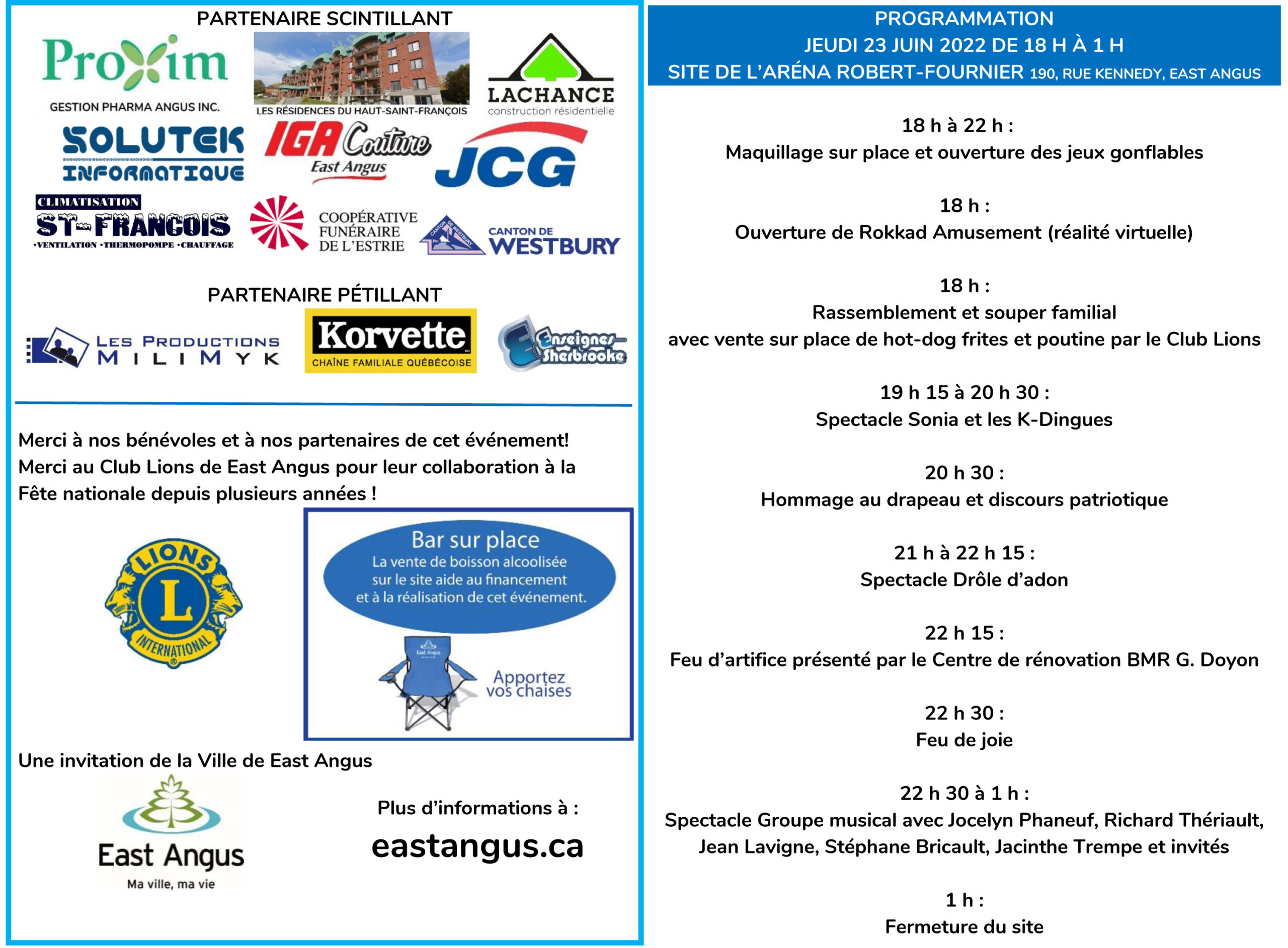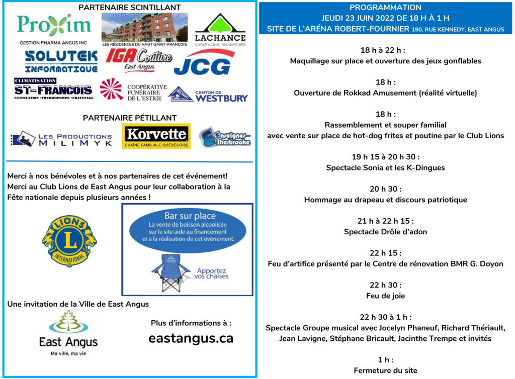23 juin 2022 : La Fête nationale ça se passe à East Angus!