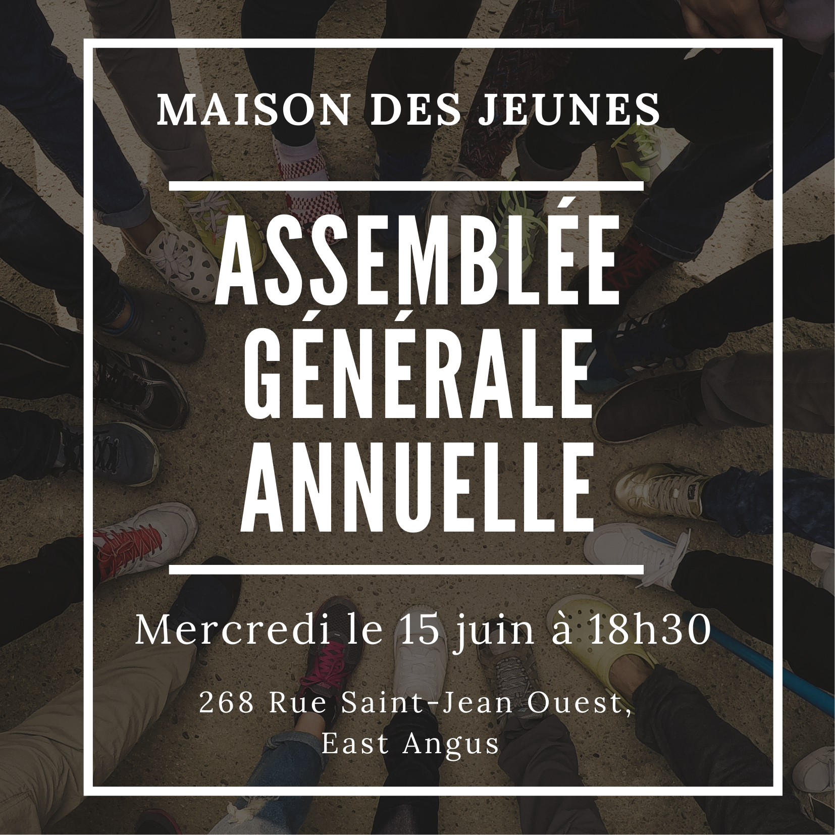 Invitation à l’Assemblée générale annuelle qui se tiendra à la maison des jeunes de East Angus.