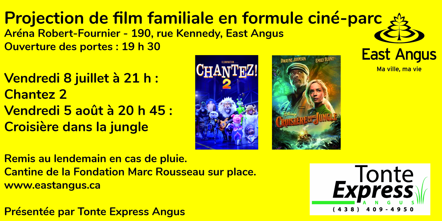 5 août : Cinéma plein-air à 20 h 45 (en cas de pluie remis au lendemain)