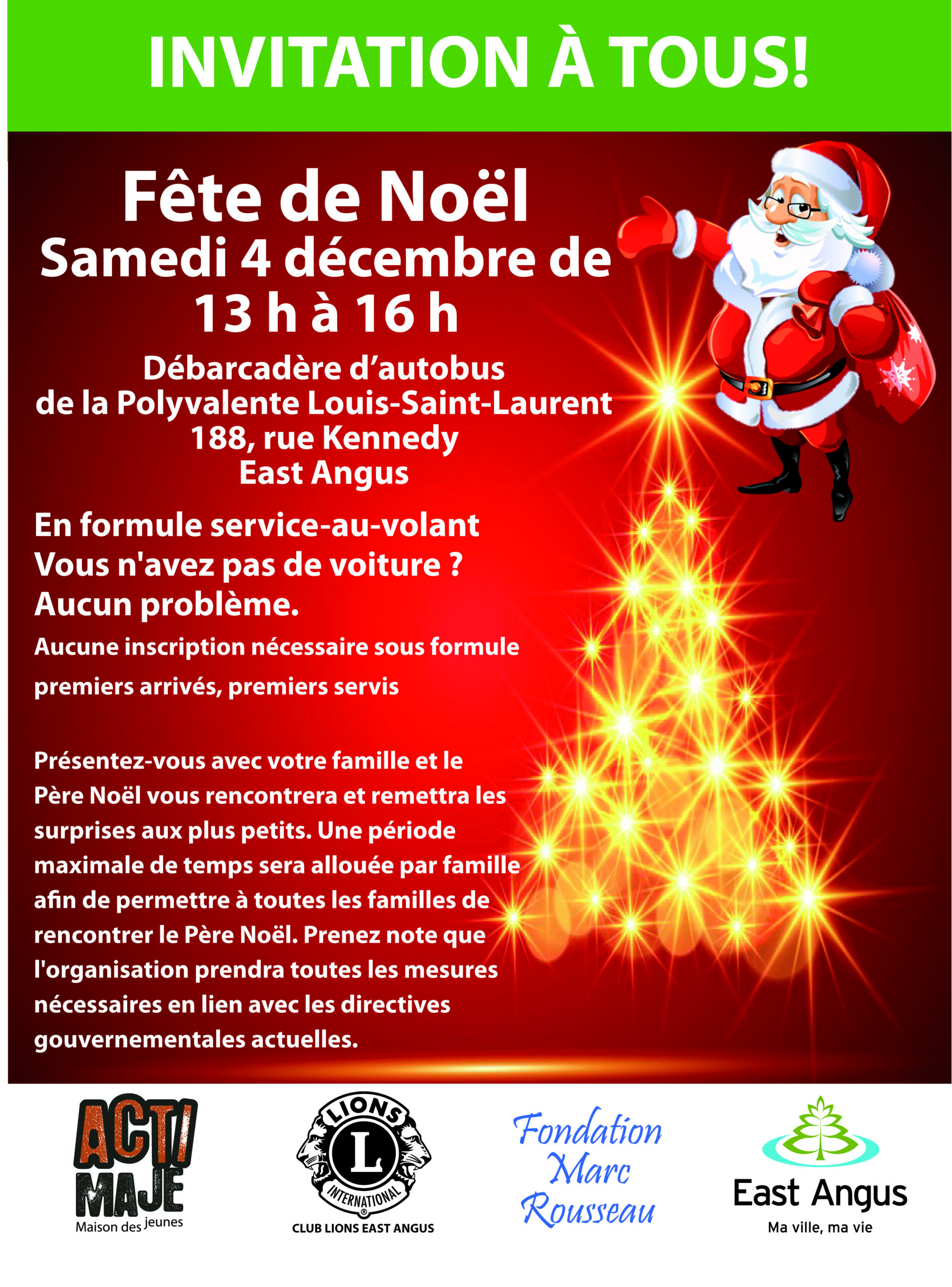 Fête de Noël en collaboration avec le Club Lions de East Angus, la Maison des jeunes Actimaje et la Fondation Marc Rousseau
