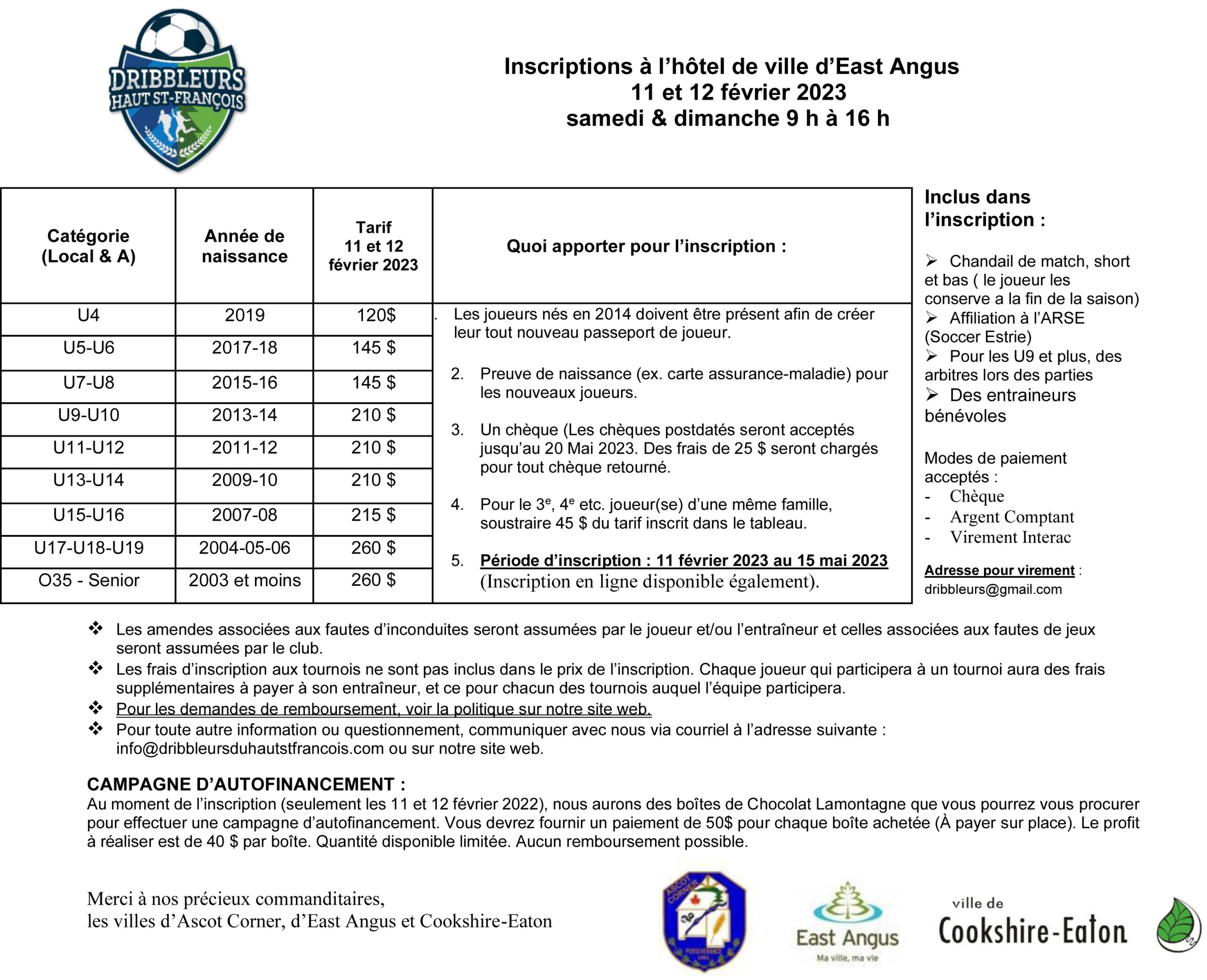 Inscription – Soccer (Dribbleurs du Haut-Saint-François)