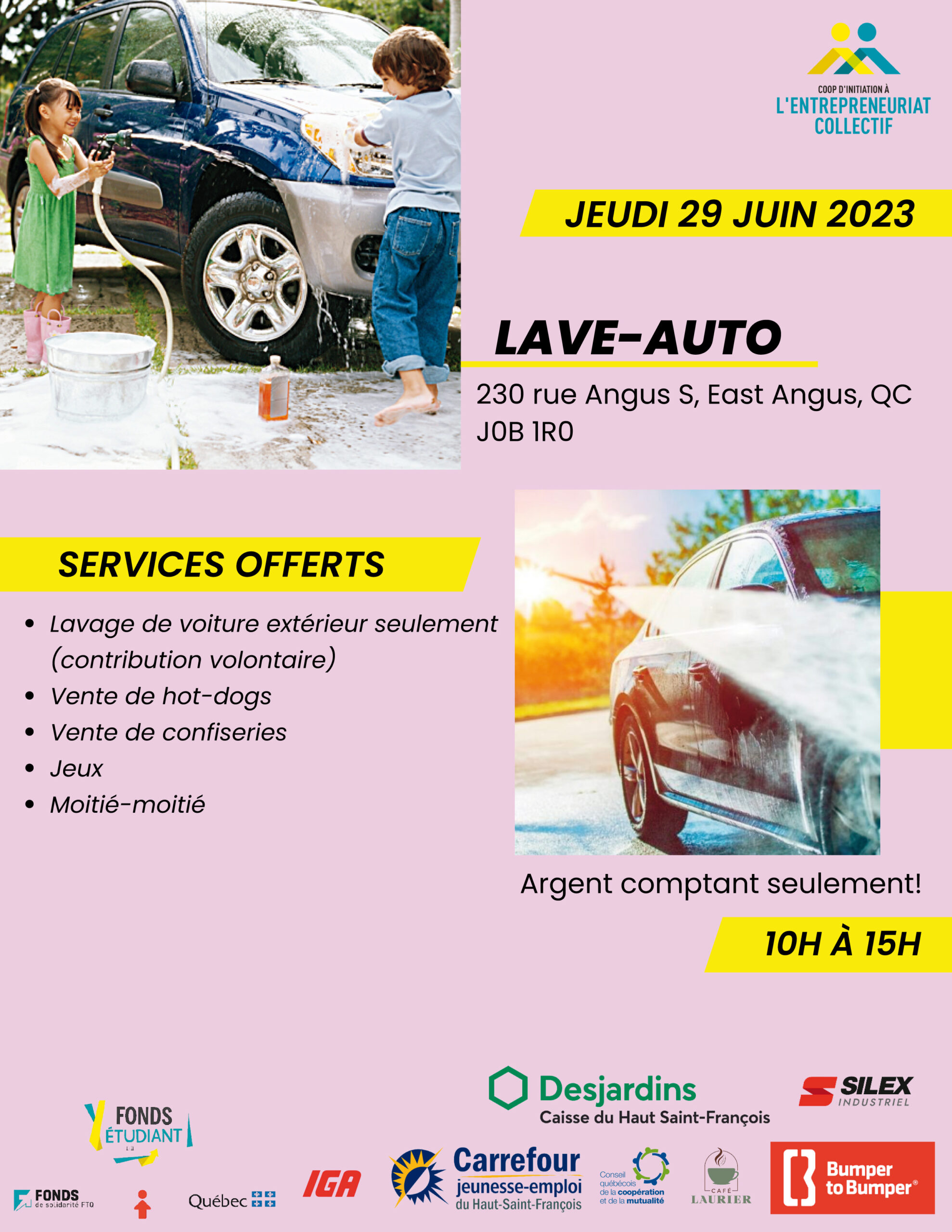 Lave-auto et repas au hot-dog au profit de la CIEC ce jeudi 29 août 2023 chez Bumper to Bumper situé au 230, rue Angus Sud à East Angus!