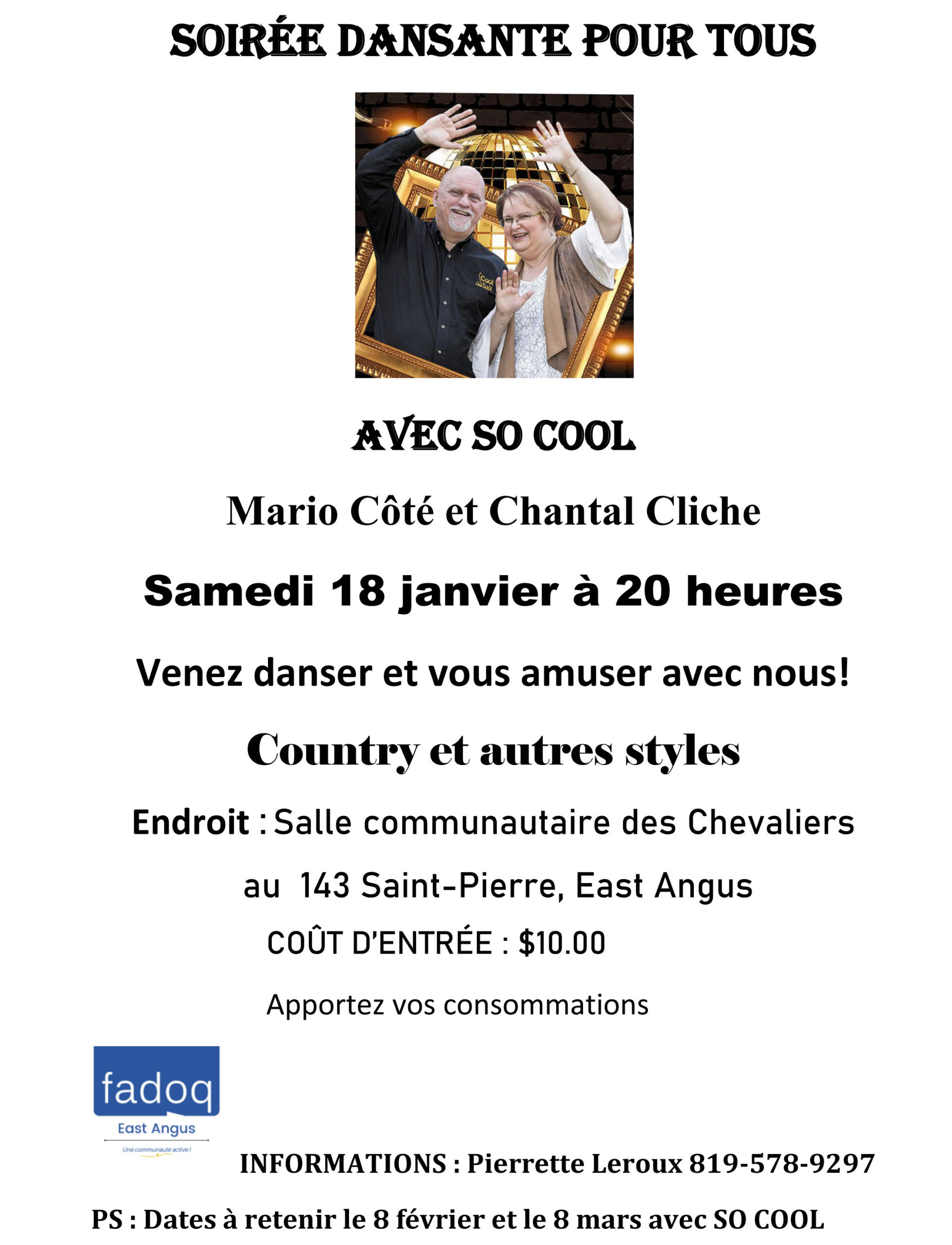 Soirée dansante avec So Cool (Mario Côté et Chantal Cliche)