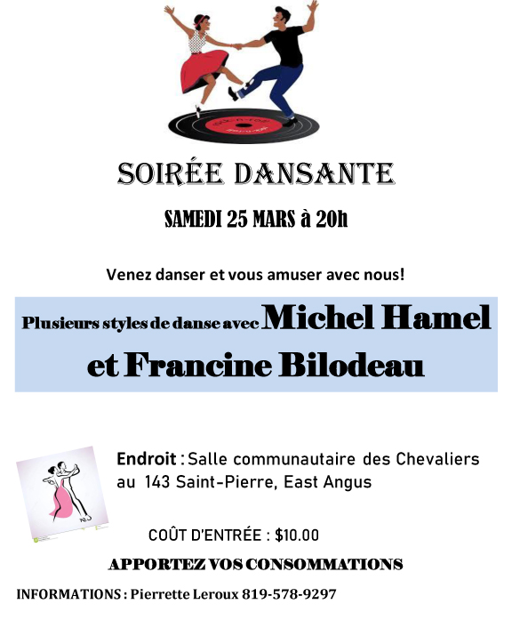 Endroit : Salle communautaire des Chevaliers au 143, rue Saint-Pierre, East Angus