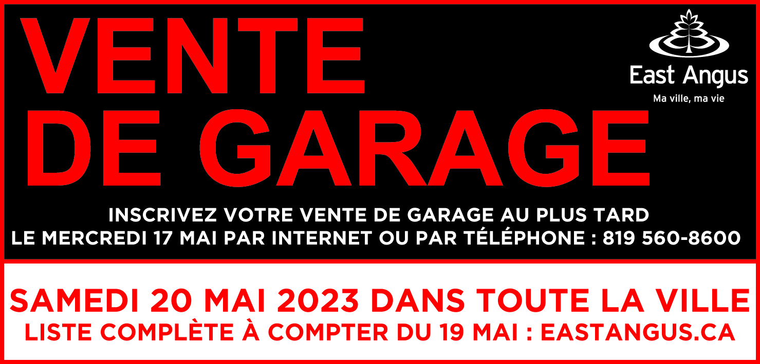 Inscrivez votre vente de garage en complétant le formulaire ici : https://docs.google.com/forms/d/e/1FAIpQLSep3XXtFxouyApSEVNy3euUidUTGnb37CHgjI4ieW2Hfpuddw/viewform