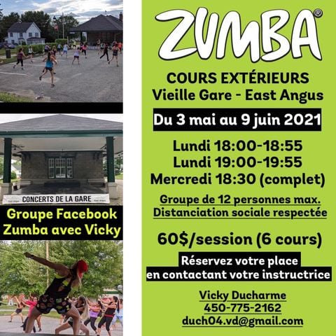 3 mai 2021 - 18 h 00 à 19 h 00 Recurring Zumba à la Vieille Gare du Papier Vieille Gare du Papier 221, avenue Saint-Jean Ouest,East Angus,Quebec,Canada 60$