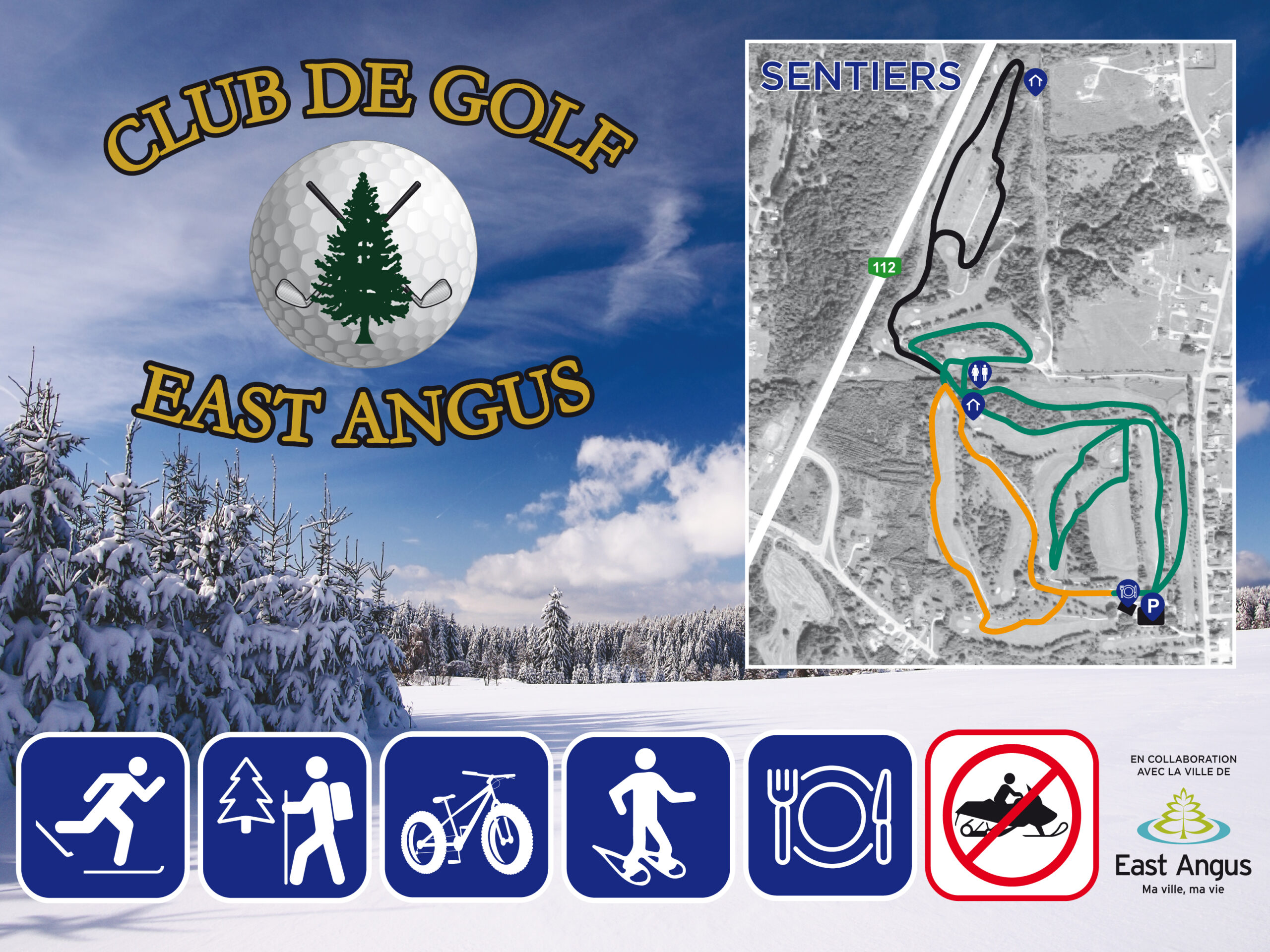 Le terrain de golf de East Angus, fondé en 1935, figure parmi les plus anciens terrains de la région. Boisé et vallonné, le parcours de 5 564 verges (normale 70) compte 18 trous représentant un superbe défi pour les golfeurs de tous les niveaux. En plein cœur de East Angus, le terrain offre un champ de pratique, un service de location d’équipement et de voiturettes, des cours de golf et un chalet très accueillant. Pour planifier une leçon particulière, n’hésitez pas à communiquer avec un golfeur professionnel sur place.