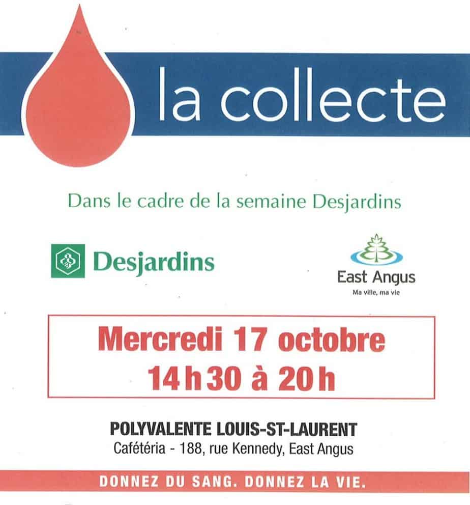 Collecte de sang Agrandir l'image Collecte de sang – Mercredi 17 octobre de 14 h 30 à 20 h East Angus2020-03-11T14:47:36-04:0016 octobre 2012|Nouvelles| Partager sur les réseaux FacebookTwitterCourriel