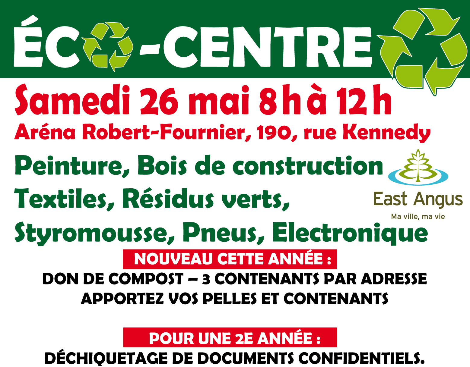 Écocentre mobile de 8 h à 12 h à l’Aréna Robert Fournier