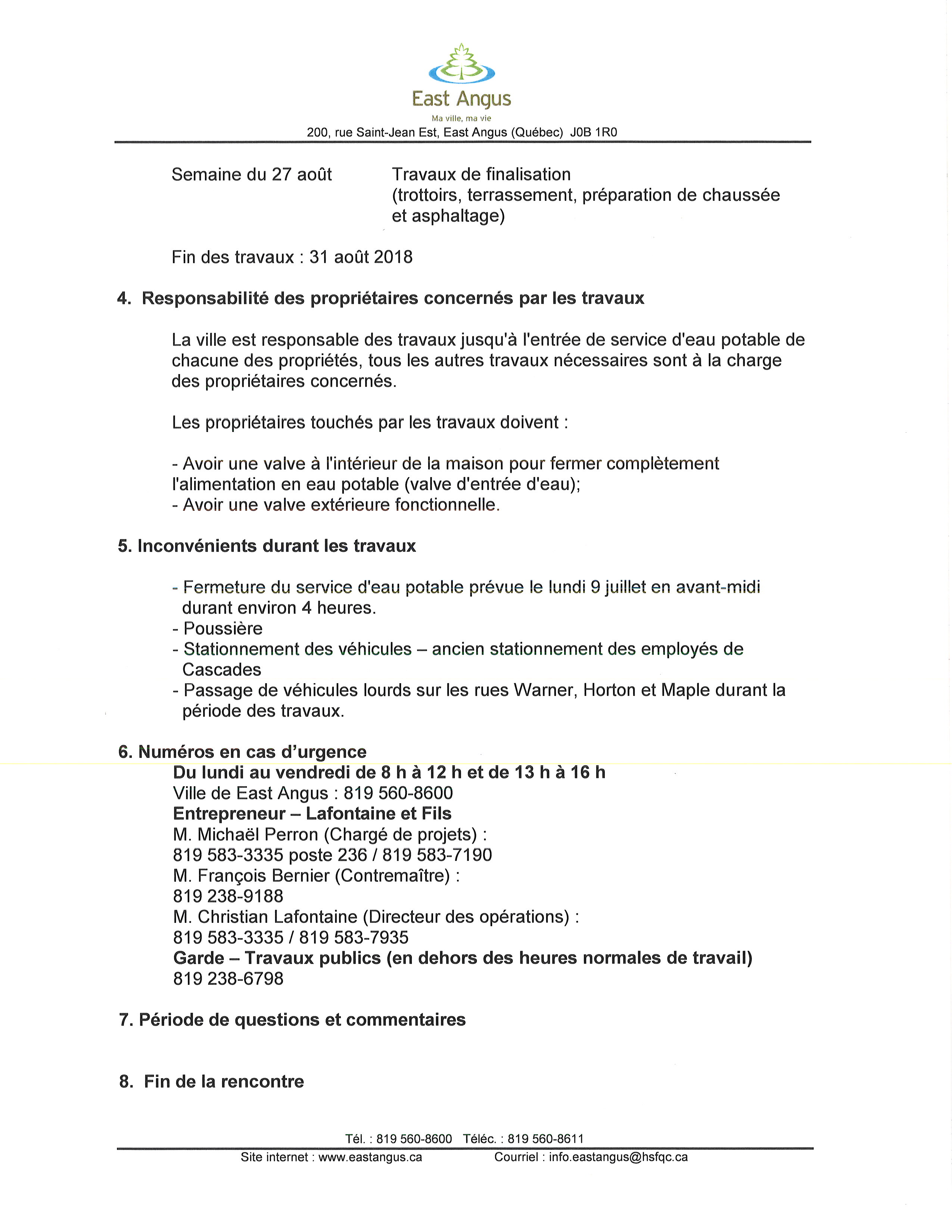 Pour les citoyennes et les citoyens qui n’ont pu assister à la rencontre hier à l’Hôtel de ville.