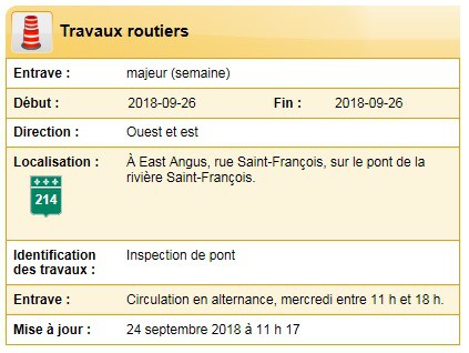 De plus, prendre note du report de l’inspection du Pont Taschereau du Ministère des Transports au mercredi 26 septembre.