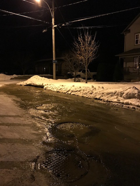 Réparation d’un bris d’aqueduc sur la rue St-Louis à l’intersection de la rue Pasteur.