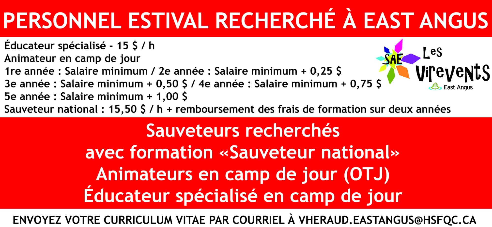 Il est encore temps de postuler pour un emploi d’été à la Ville de East Angus !