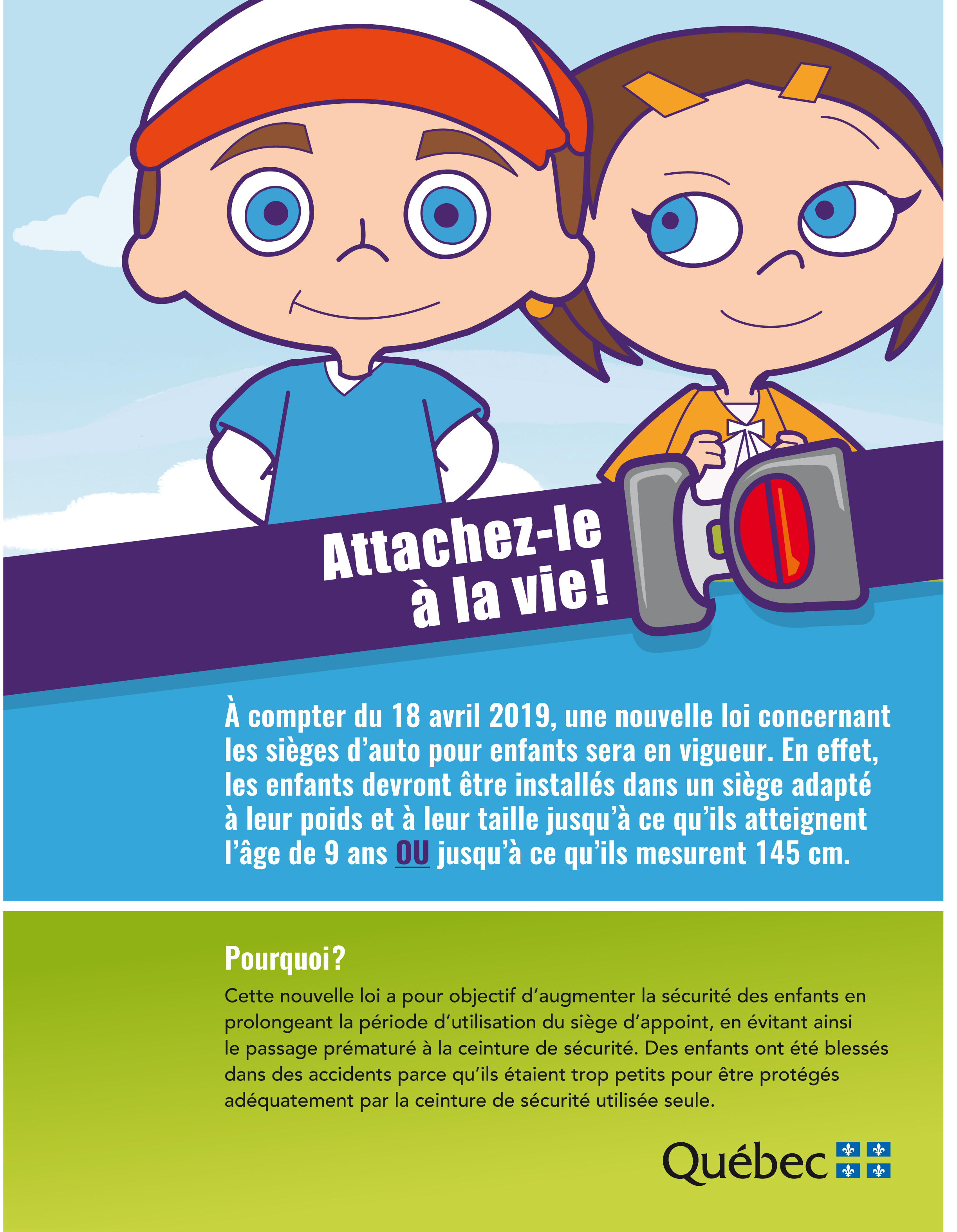 Le saviez-vous? : Une nouvelle loi Agrandir l'image Le saviez-vous? Aujourd’hui une nouvelle loi entre en vigueur concernant les sièges d’auto pour enfants. East Angus2020-03-11T14:31:31-04:0018 avril 2019|Nouvelles| Partager sur les réseaux FacebookTwitterCourriel