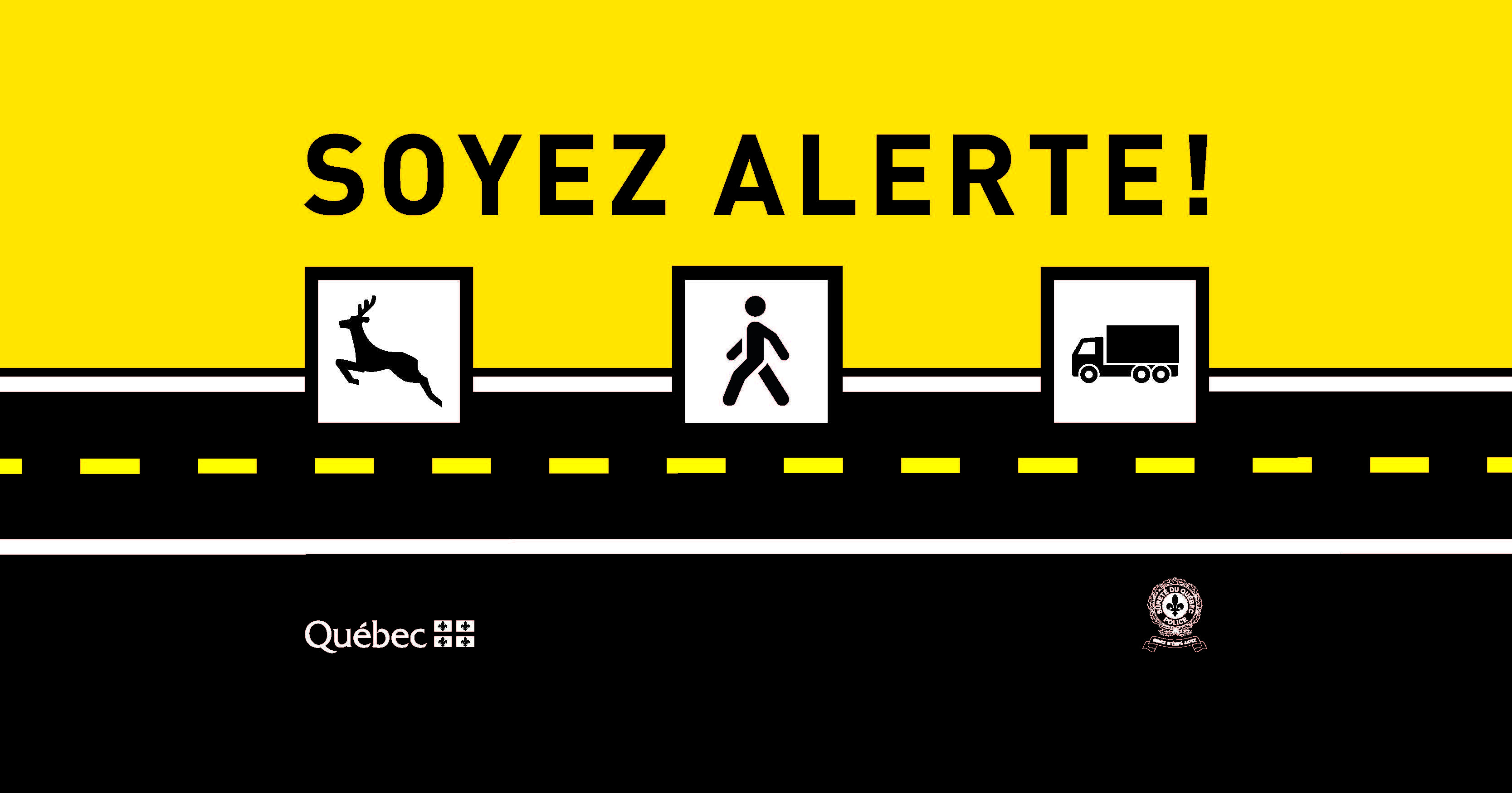 Avec l’inscription « Soyez alerte! », les panneaux visent à rappeler aux usagers de la route que des imprévus peuvent survenir à tout moment. Un trajet quotidien routinier peut donc avoir des conséquences graves si les conducteurs ne sont pas attentifs et n’adaptent pas leur conduite en fonction de différents imprévus pouvant survenir.