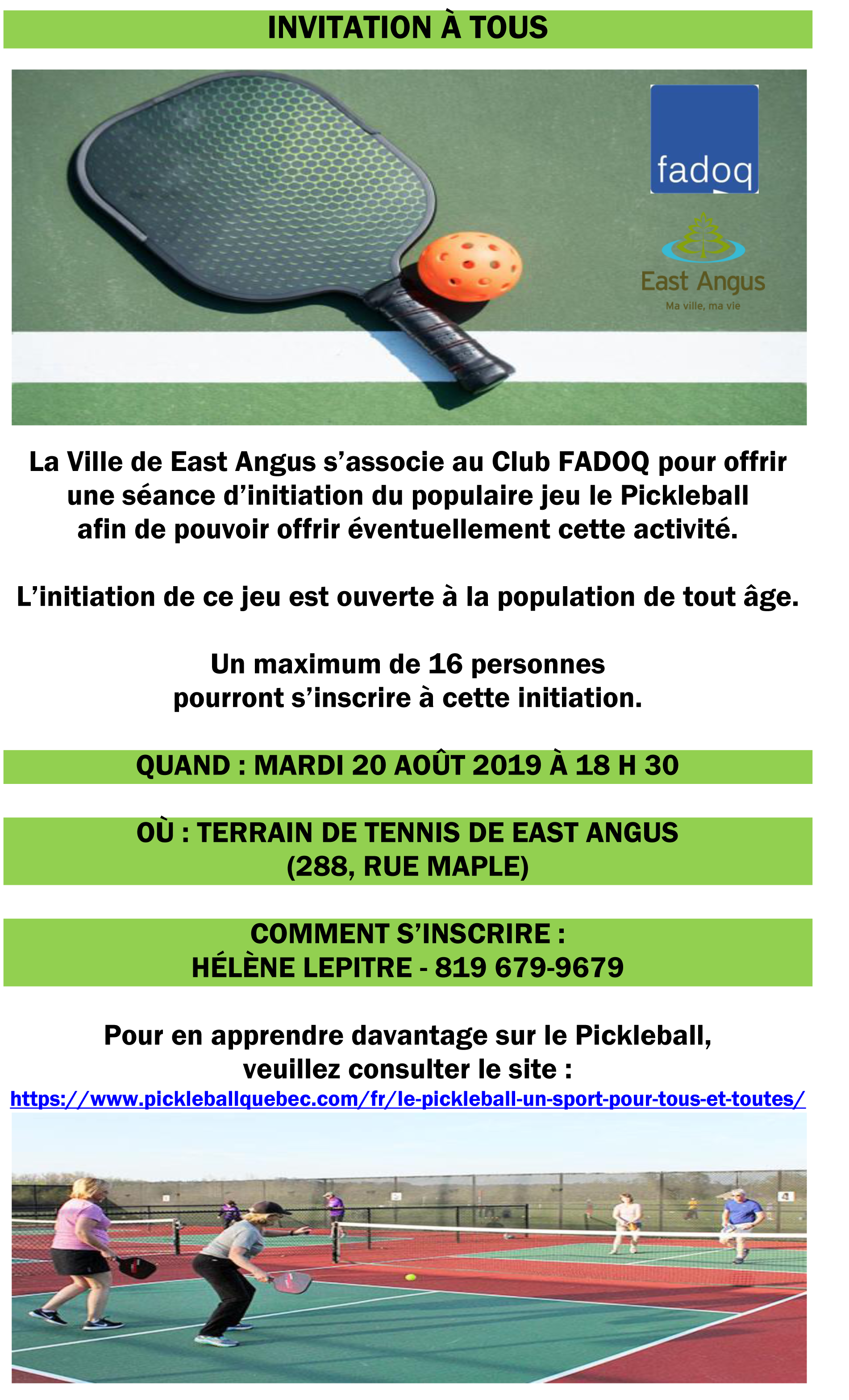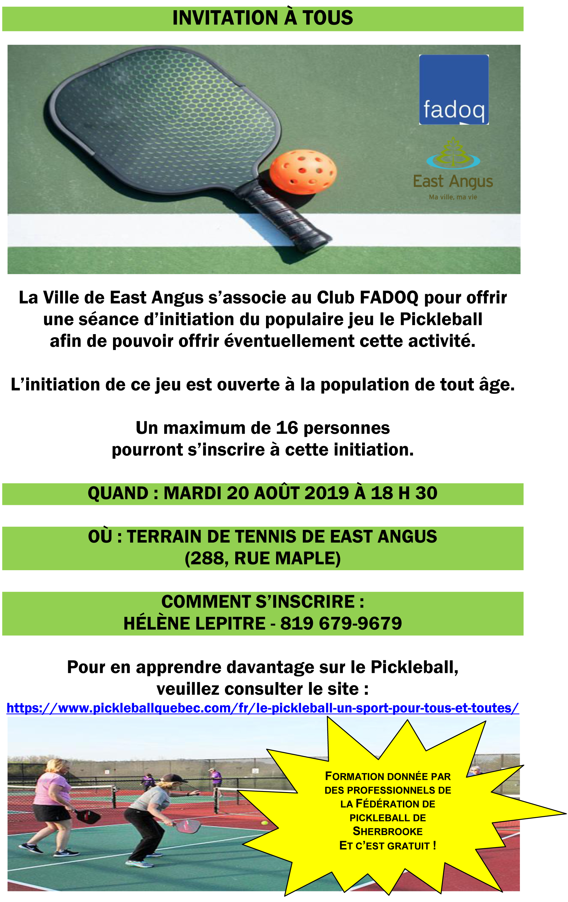 Pour inscription : Hélène Lepître : 819 679-9679
