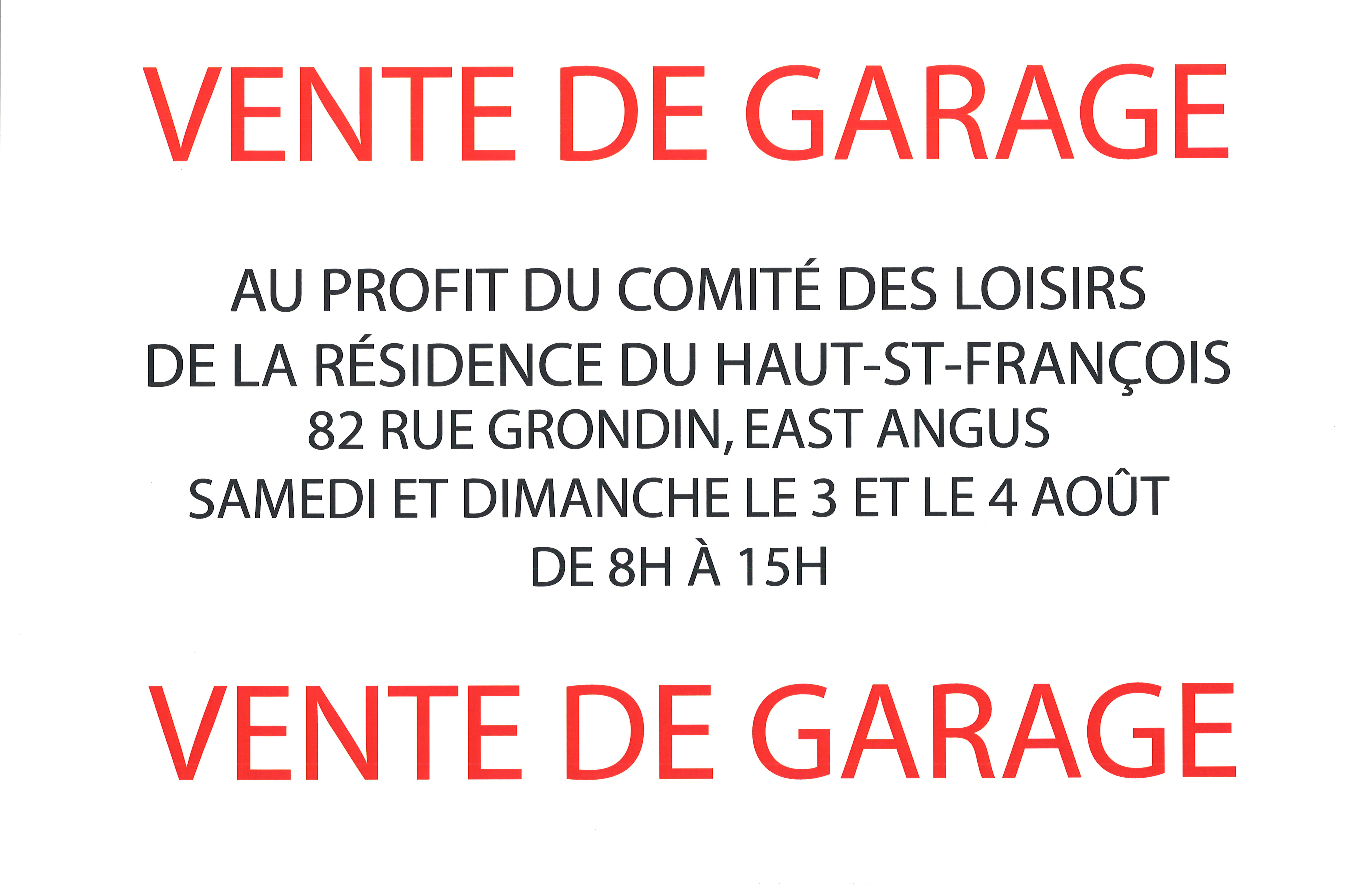 Vente de garage au profit du Comité des loisirs de la Résidence du Haut-Saint-François