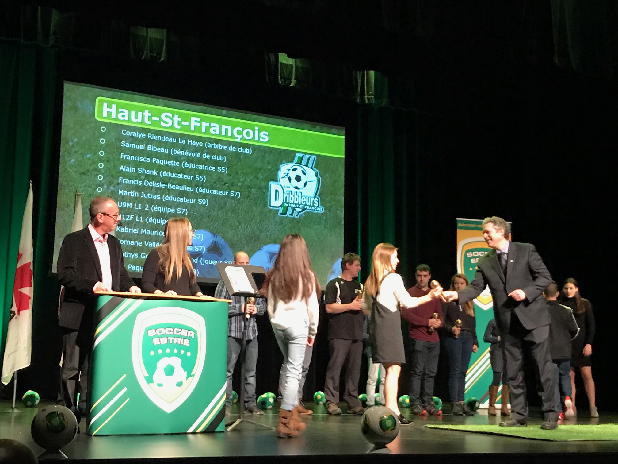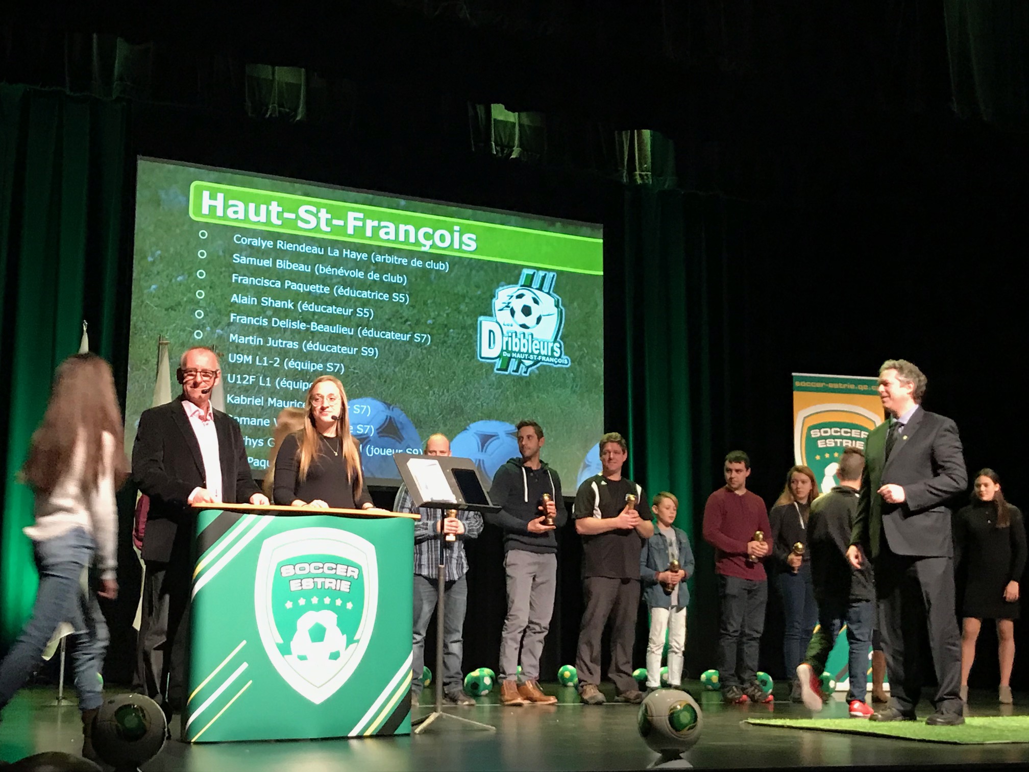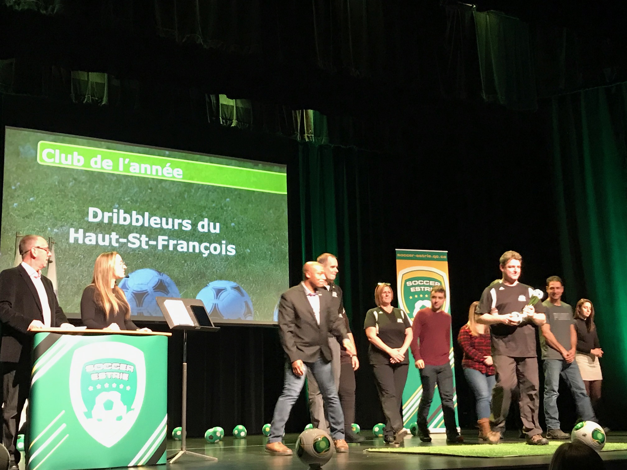 Cette année, en plus de la nomination de plusieurs joueuses et joueurs des Dribbleurs du Haut-Saint-François, la Ville de East Angus félicite tous les bénévoles (membres du conseil d’administration, entraîneurs et autres bénévoles) des Dribbleurs du Haut-Saint-François pour leur titre de club de l’année 2019 parmi les neuf clubs de soccer de la région.