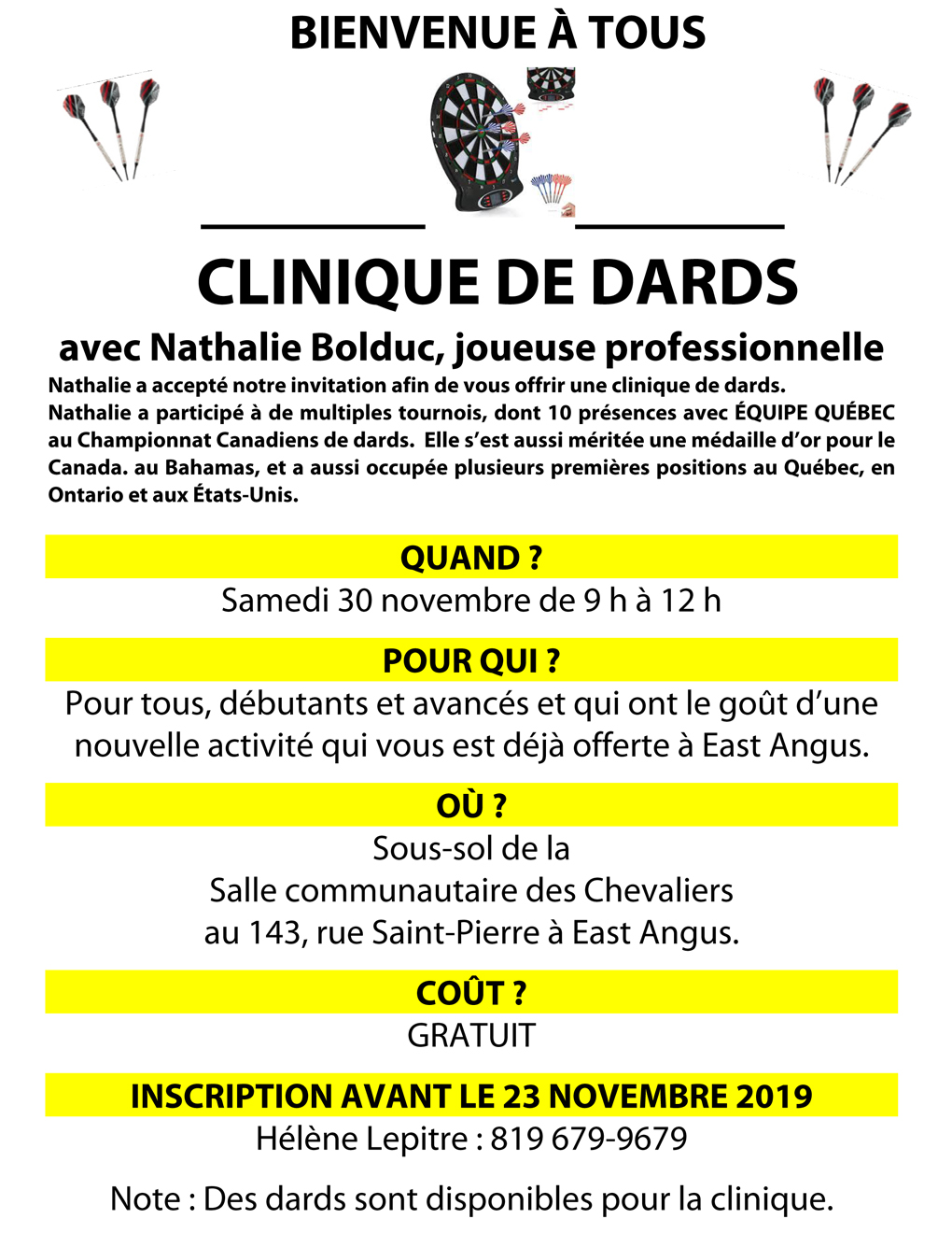 Clinique de dards de 9 h à 12 h