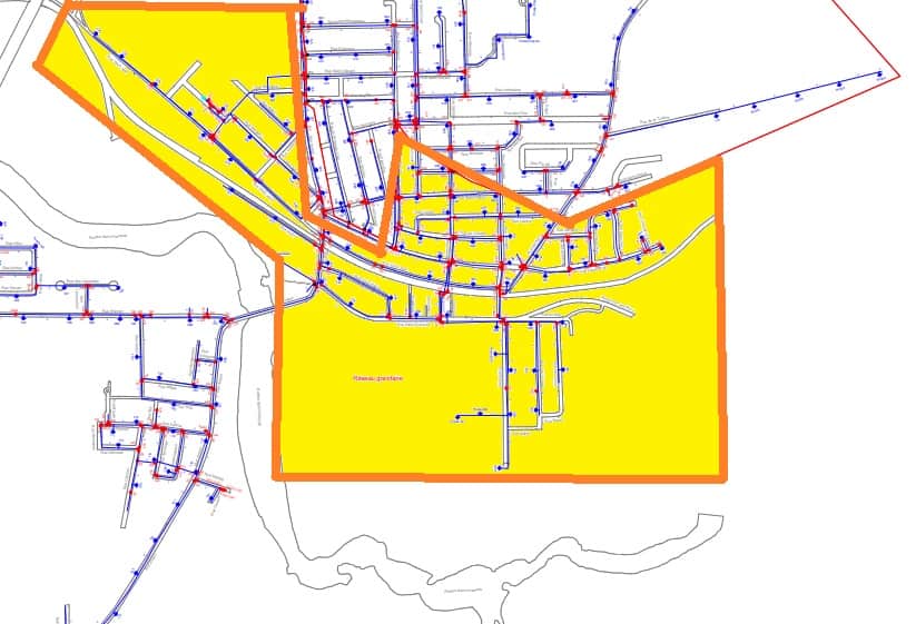 Nous invitons la population de East Angus a être vigilante, une consommation hors de la normale est actuellement présente sur le réseau gravitaire (en jaune) depuis hier lundi 9 décembre à 10 h. Nous croyons qu’il y a actuellement un bris d’aqueduc dans ce secteur.