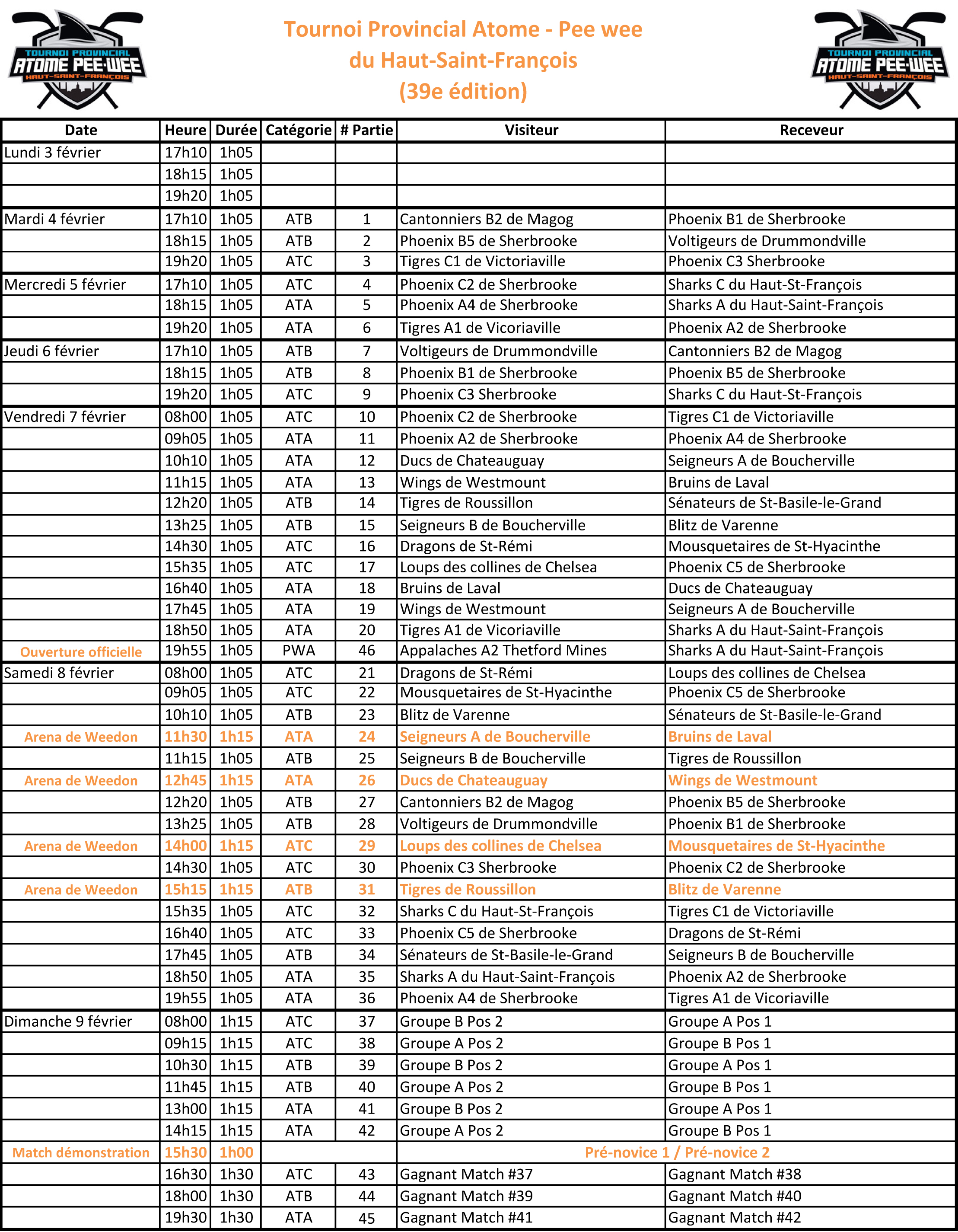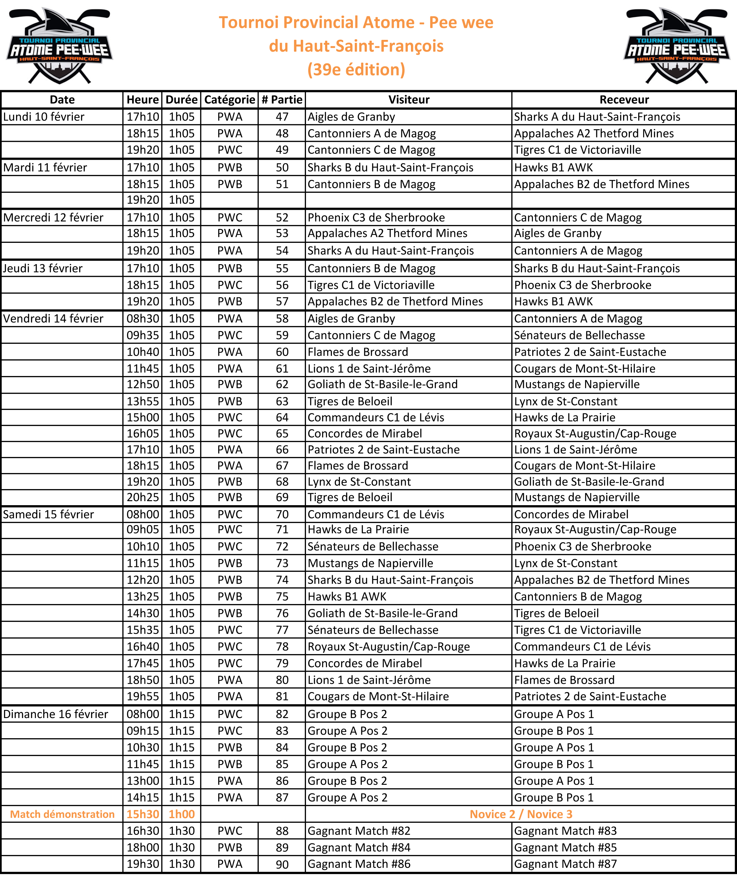 Pee Wee A-B-C du 10 au 16 février 2020