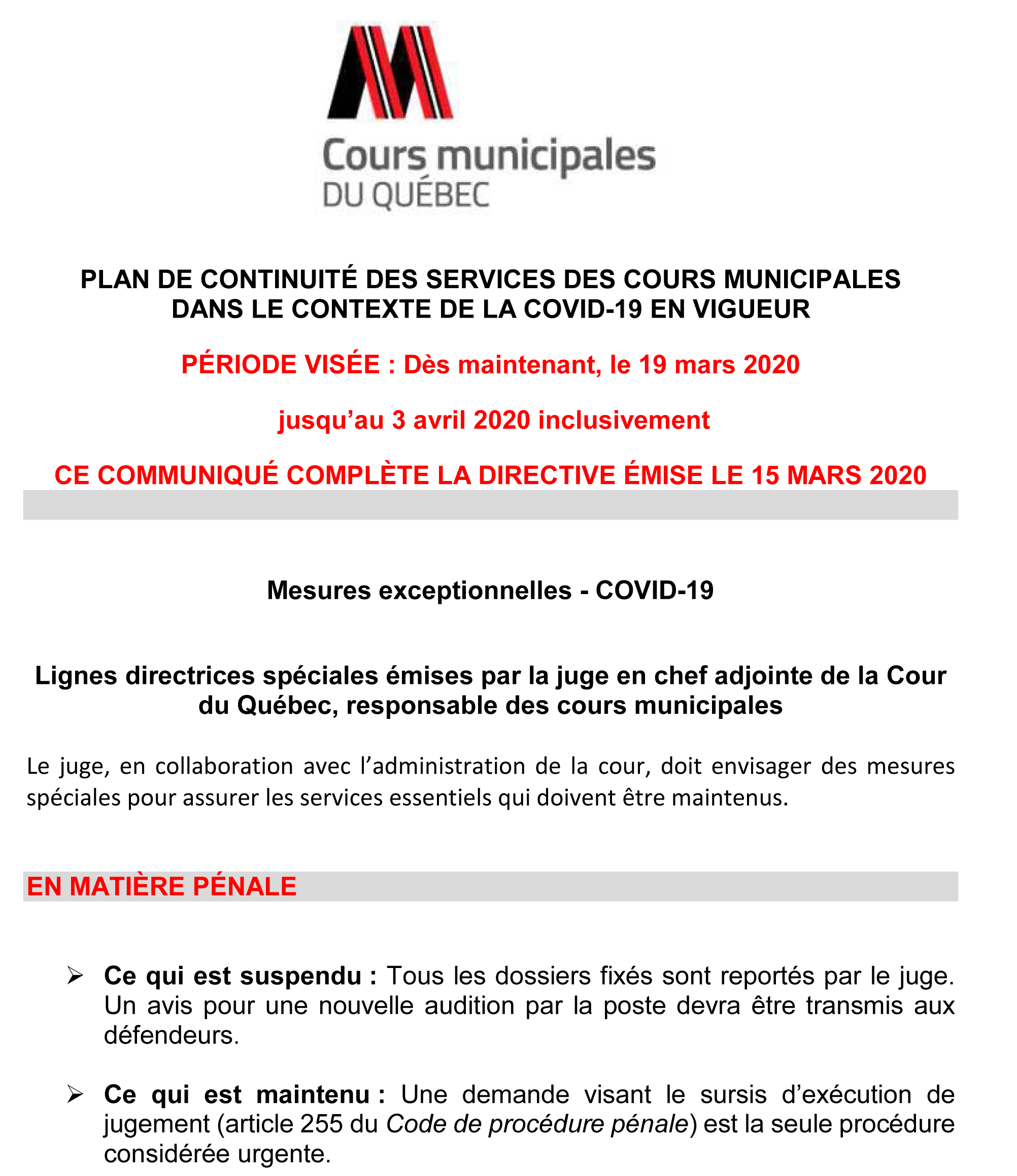 Communiqué – Cours municipales du Québec du 19 mars 2020 (.pdf)