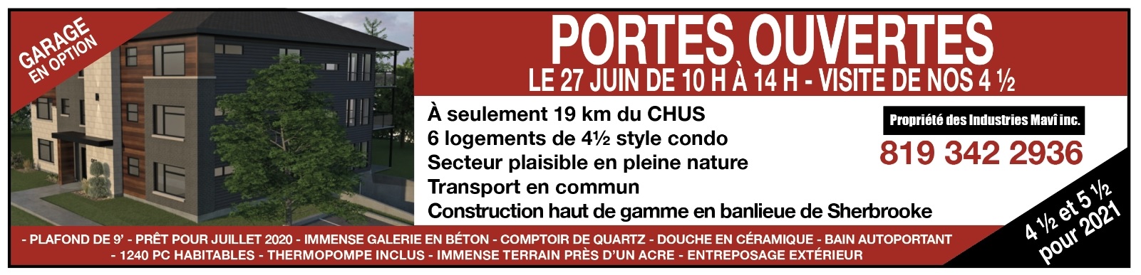 Les Industries Mavi inc. vous invite à une visite libre des nouveaux 4½ ce samedi 27 juin de 10 h à 14 h