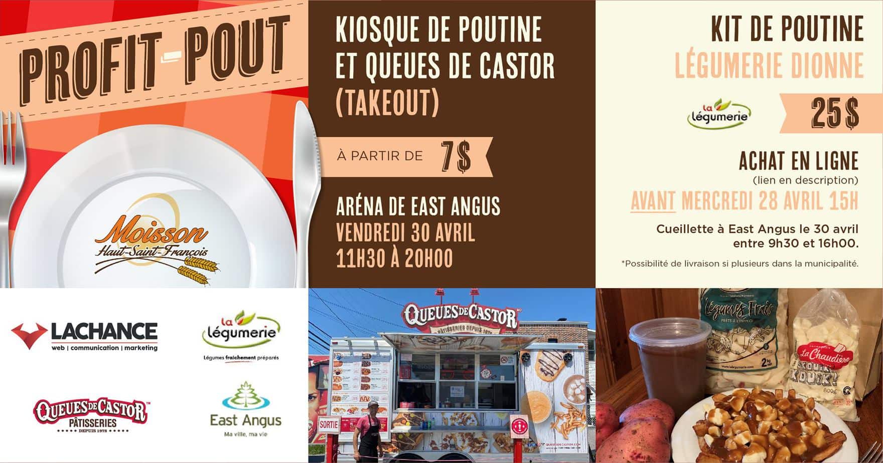 30 avril 2021 - 11 h 30 à 20 h 00 Profit-pout – Bar à poutine version modifiée ! Aréna Robert-Fournier 190, rue Kennedy,East Angus,Québec,Canada